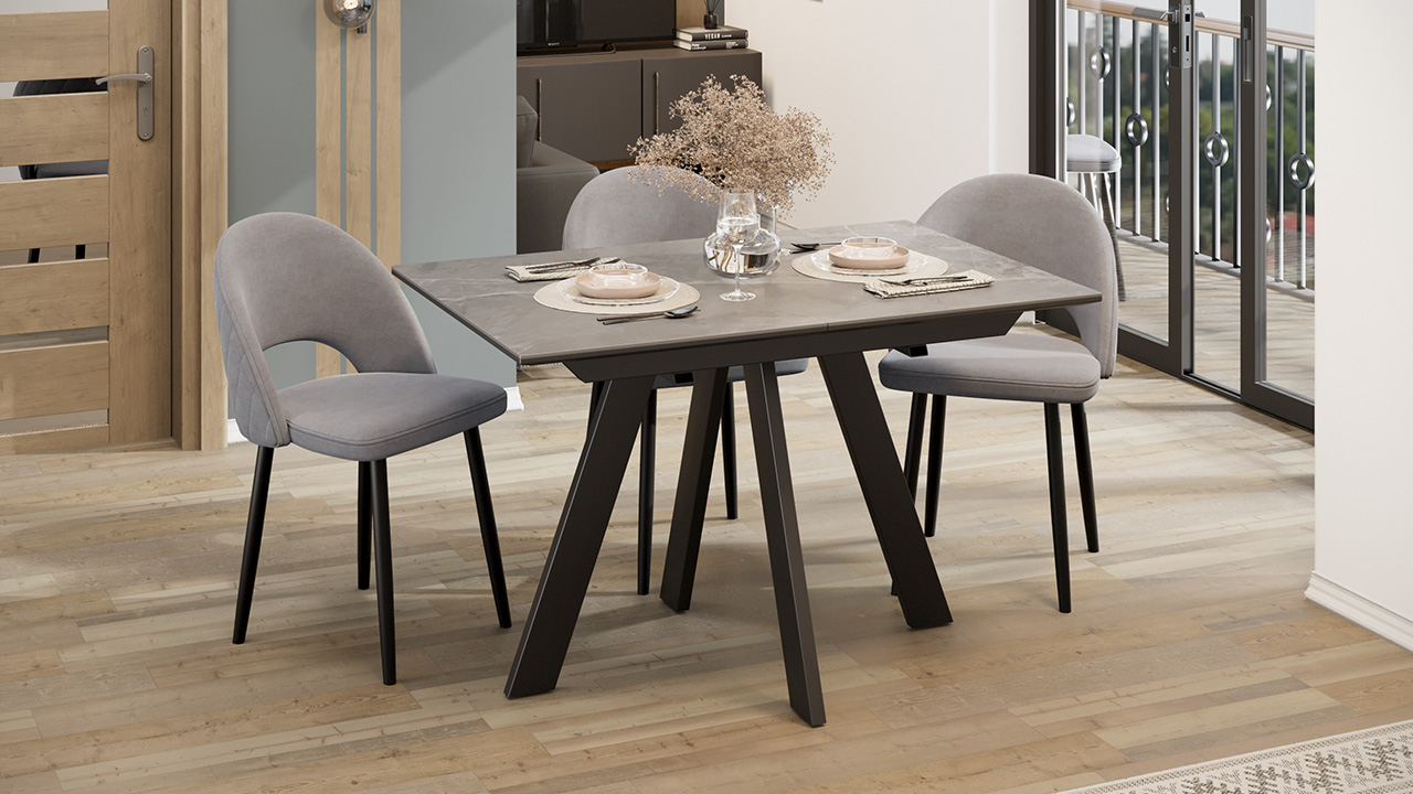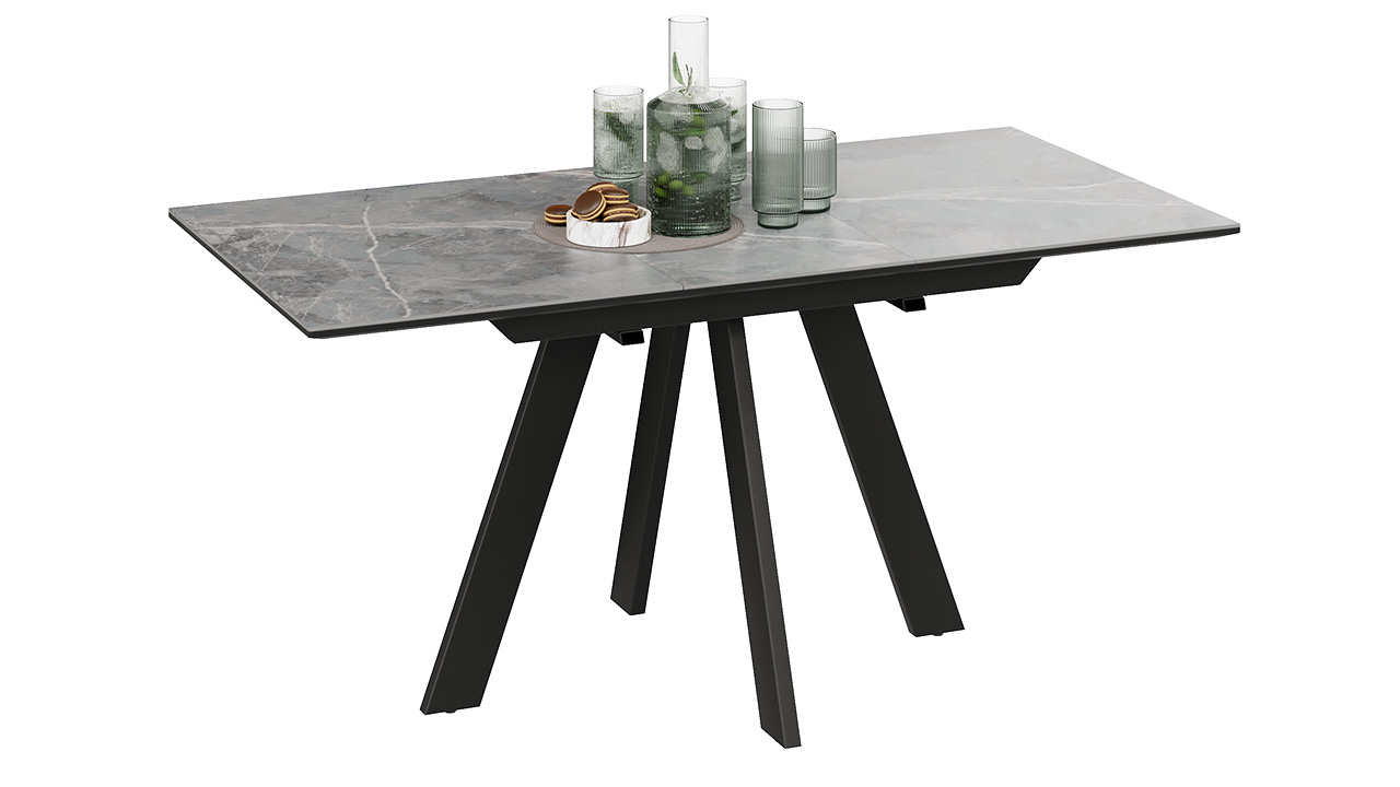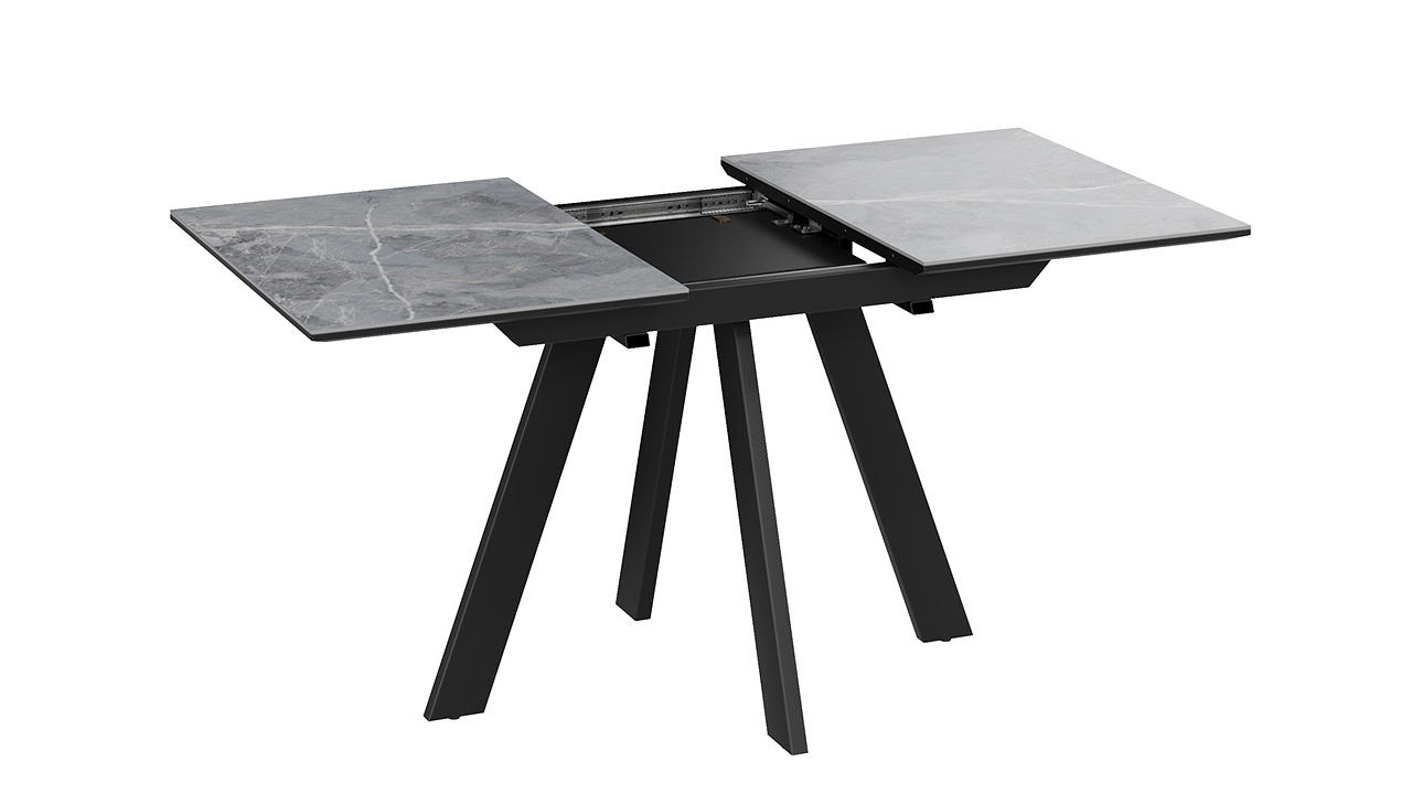 Стол обеденный раздвижной «Бронкс» Тип 1 Черный муар/Керамика матовая серый мрамор