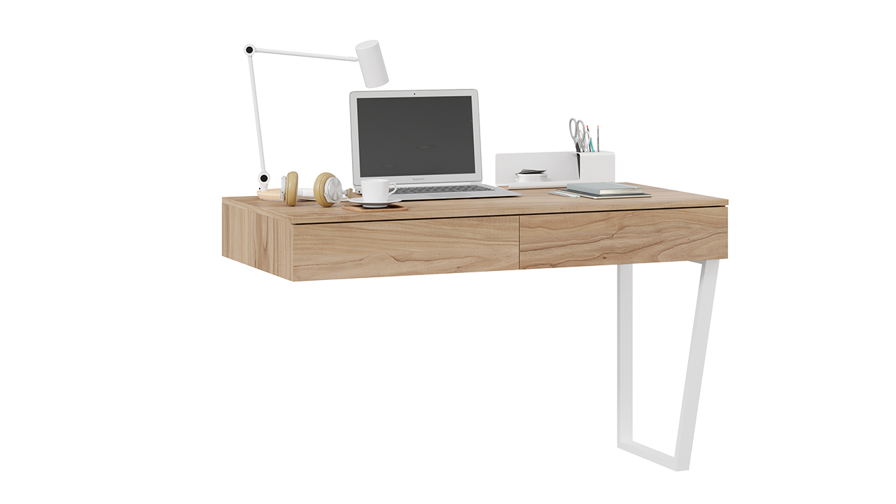 Порто СМ-393.15.012 Стол письменный со шкафом комбинированным (настольным) Белый жемчуг/Яблоня беллуно/Белый софт