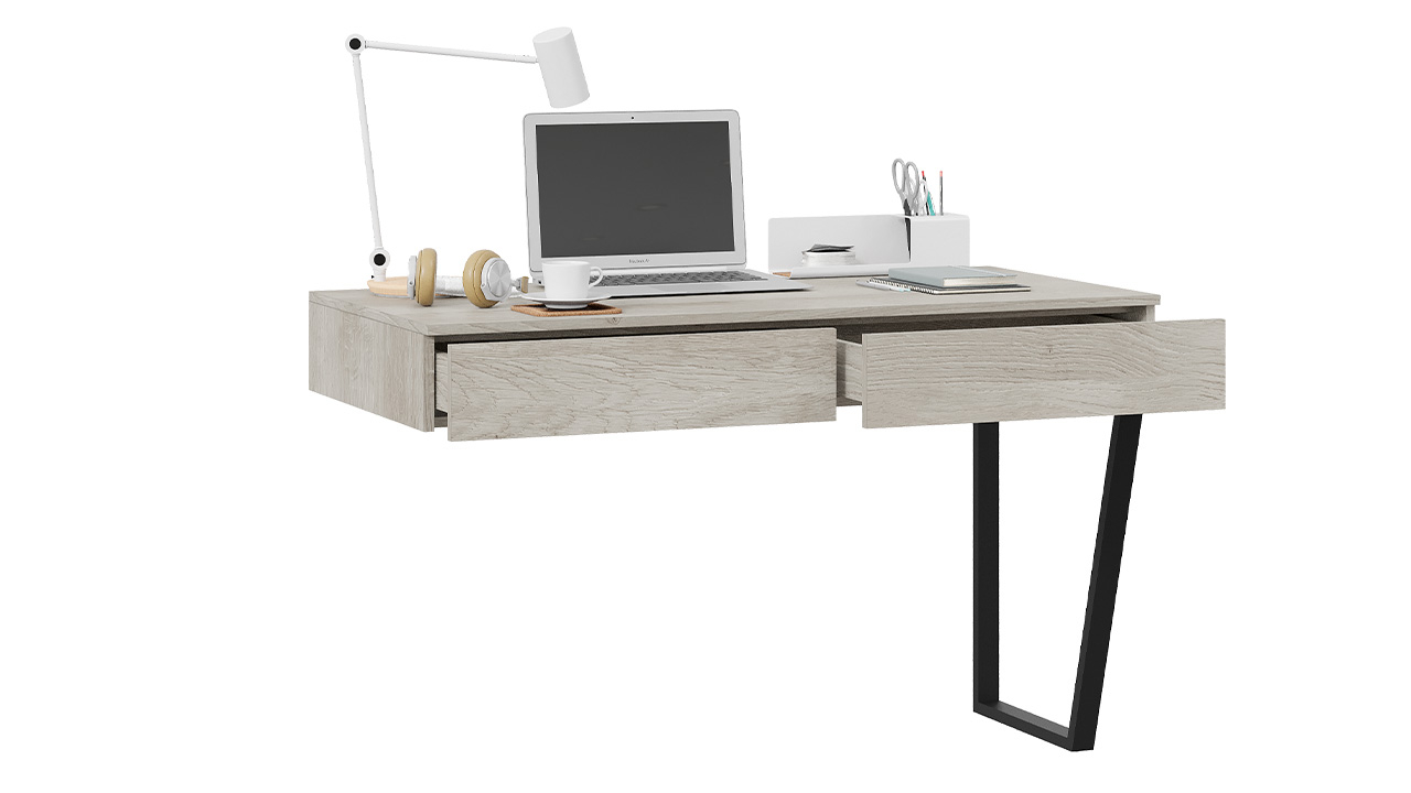 Порто СМ-393.15.012 Стол письменный со шкафом комбинированным (настольным) Яблоня Беллуно/Графит софт