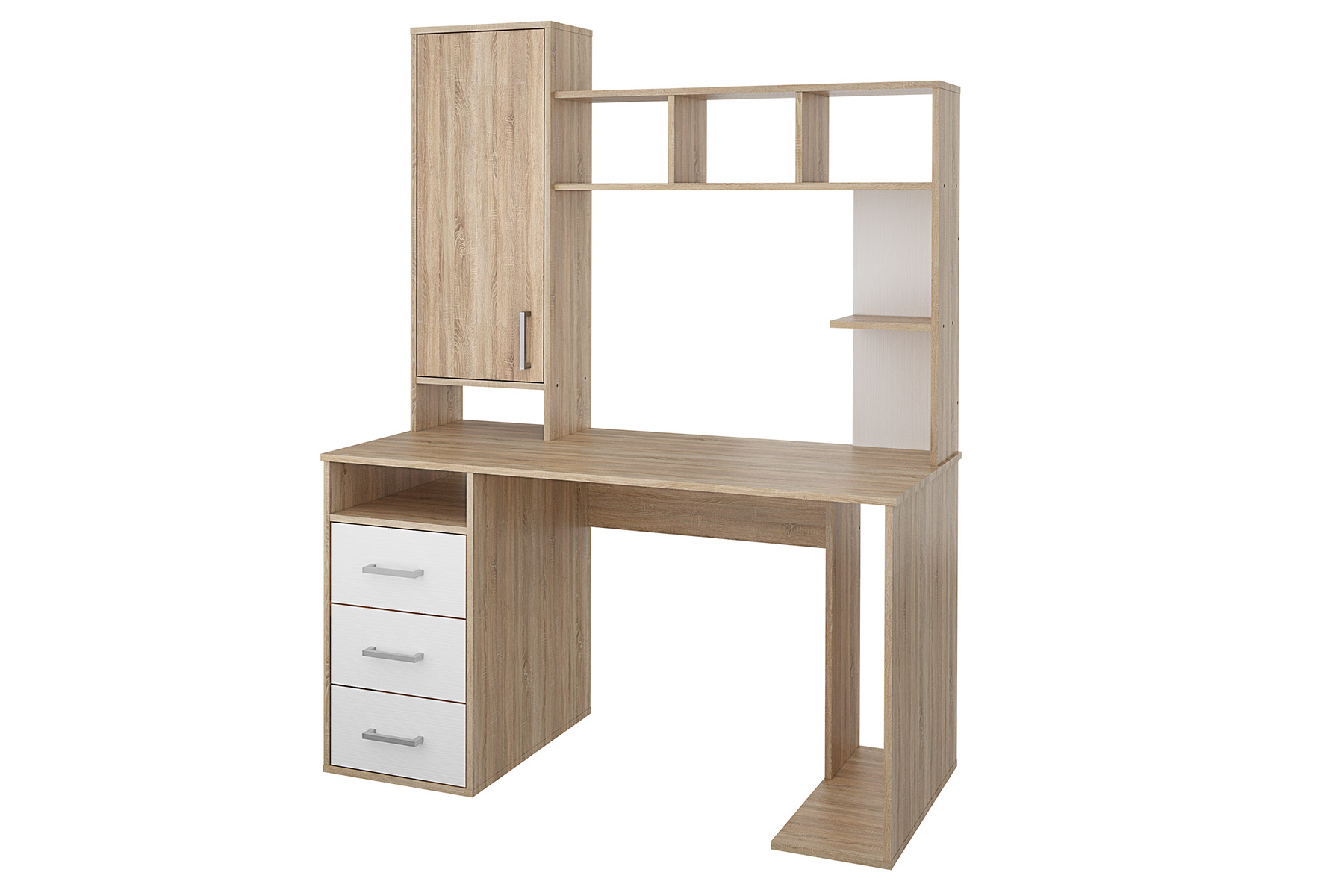 Стол компьютерный с надстройкой Мика 165.16 БФ Дуб сонома/Белый