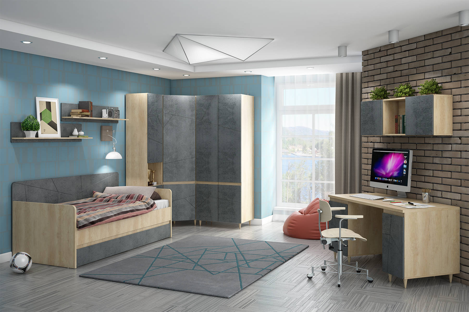 Шкаф угловой Киото 339.08 Дуб небраска/Бетон тёмный