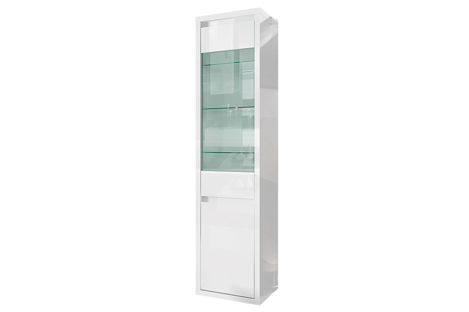 Корпус и фасады выполнены из ЛДСП в универсальном белом цвете. Светлая палитра помогает визуально расширить пространство, придавая лёгкость и свежесть окружающей обстановке. Прозрачная вставка из стекла на фасаде делает модель особенно изящной, позволяя выставить на обозрение книги, посуду или декор.