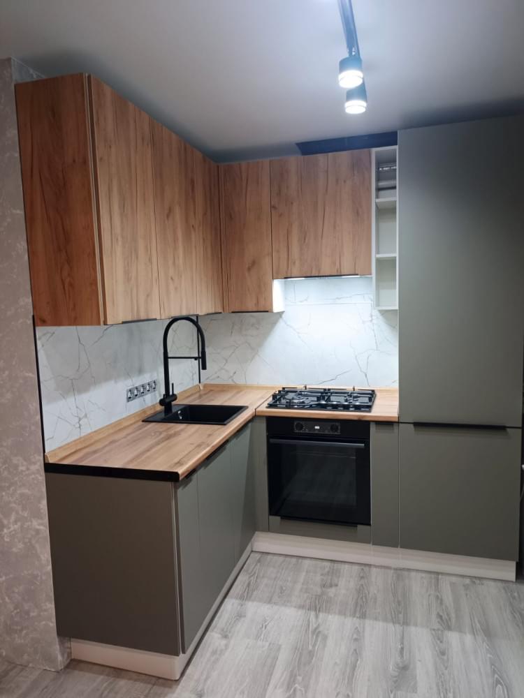 Целостность и гармония пространства кухни «Лофт» притягивает взгляд своей универсальностью и декором фасадов, близкими по оттенкам и фактуре к природным материалам. Простые формы модулей кухни не перегружают пространство, а продуманный выбор цветовых решений натурального камня или матовых поверхностей в сочетании со спокойными древесными вариантами добавляют глубину и создают особую атмосферу уюта.