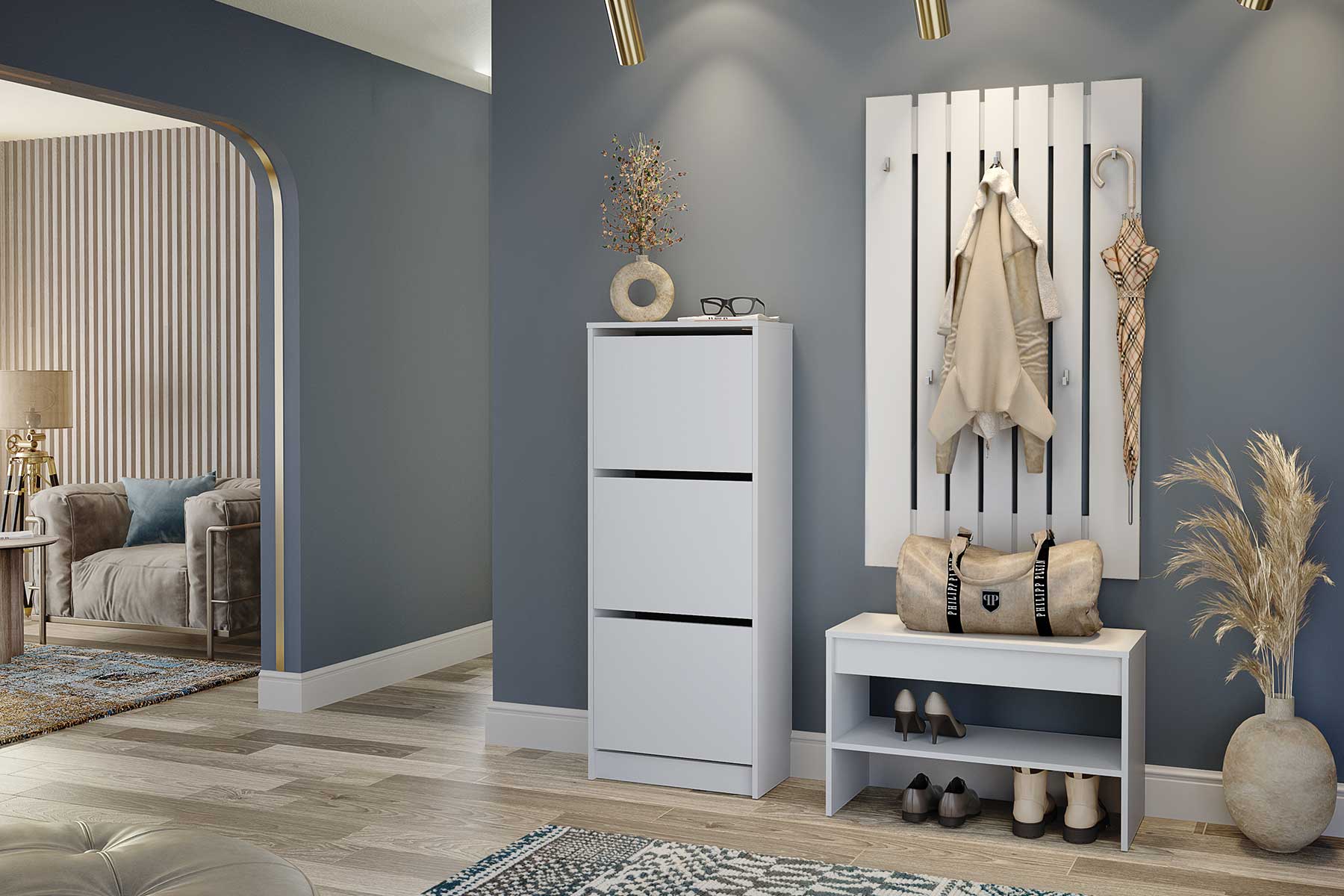 Механизмы обувницы – пластиковые. Внутренняя часть выполнена из МДФ. Крючки пластиковые цвета металлик.