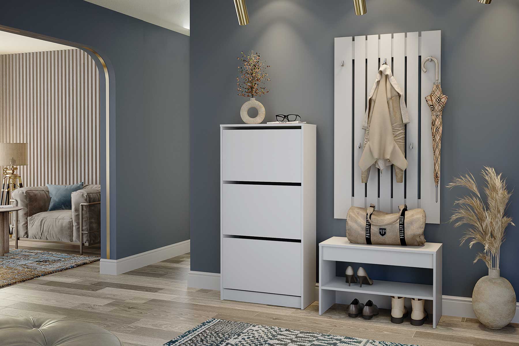 Механизмы обувницы – пластиковые. Внутренняя часть выполнена из МДФ. Крючки пластиковые цвета металлик.