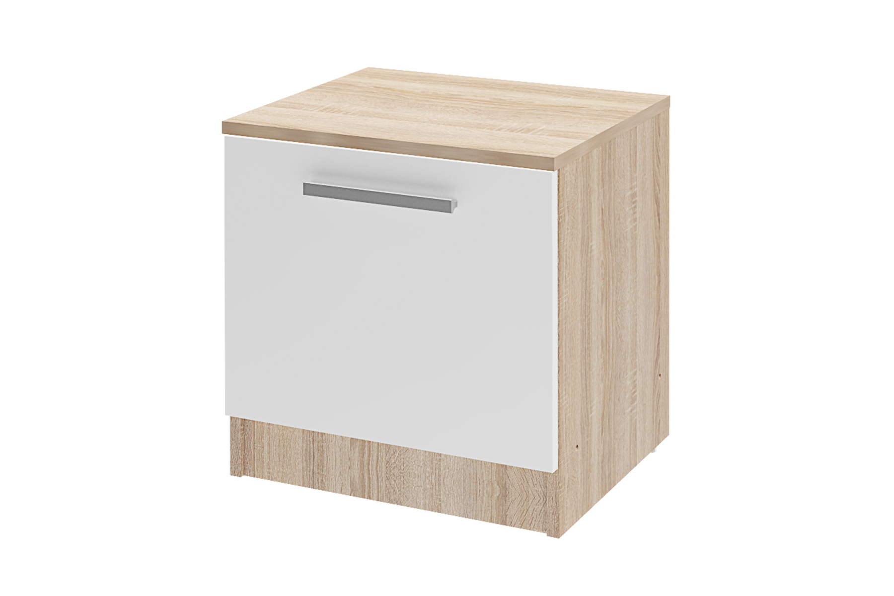 Корпус изготовлен из 16 мм ламинированной древесностружечной плиты цвет –«Белый» и «Дуб Сонома». Торцевые поверхности корпуса закромлены кромками полипропилен. Фасады изготовлены из 16 мм ламинированной древесностружечной плиты цвет –«Белый» и «Дуб Сонома». По периметру фасады закромлены кромками полипропилен . - Ручки пластиковые.
