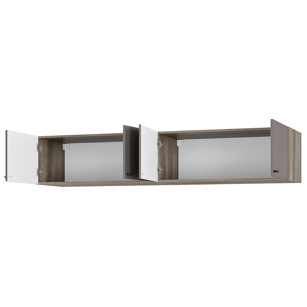 Шкаф навесной ШКН-04 можно использовать как антресоль к 4-х створчатым шкафам Олива ШК-13, как подвесную полку или как напольную тумбу. Элегантная фрезеровка – продолжение индивидуальности коллекции. Простая и функциональная конструкция.