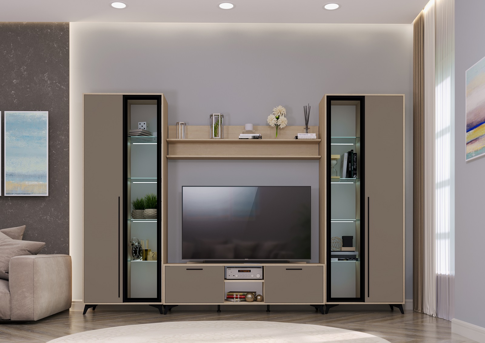 Гостиная "ЕВА" Композиция №2 Дуб Экспресив/Муссон