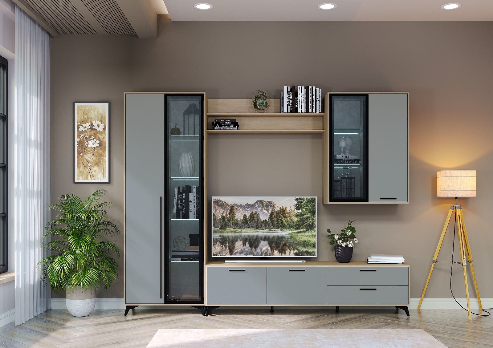 Гостиная "ЕВА" Композиция №2 Дуб Экспресив/Муссон