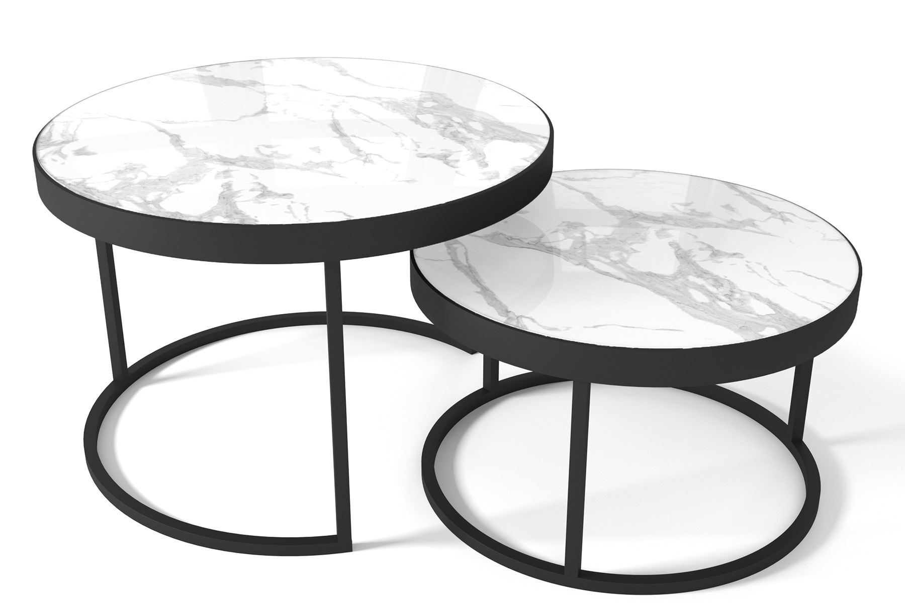 Комплект из двух столов, как на фото. Размер (ШхВхГ,см) - 63х40х63/50х30х50 Стол в собранном виде.