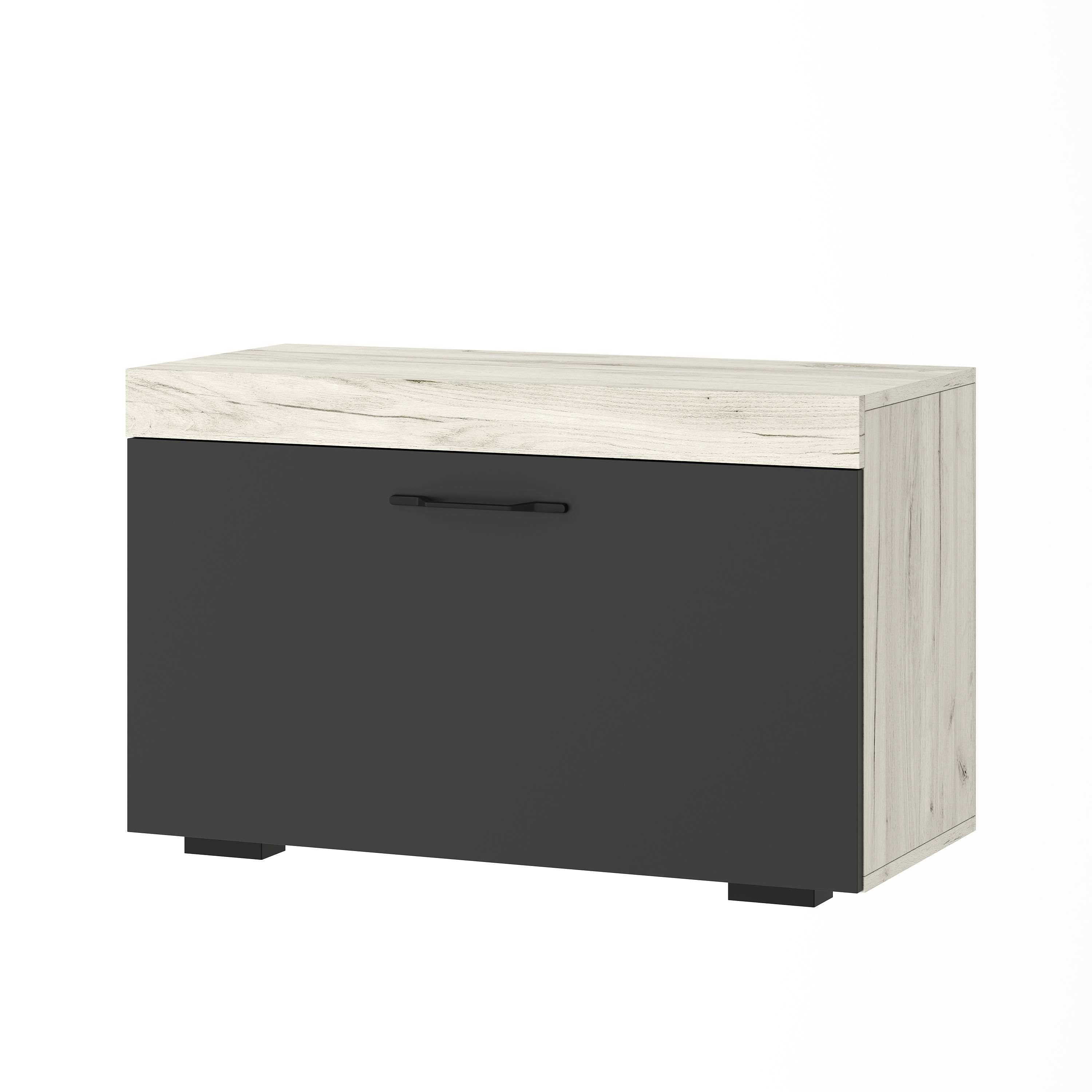 Обувница «СОНАТА» ОС-800 с откидным фасадом на газлифте, с полкой. Устанавливается стильная металлическая ручка, чёрная, матовая. Верхняя часть тумбы обрамлёна профилем MDF.