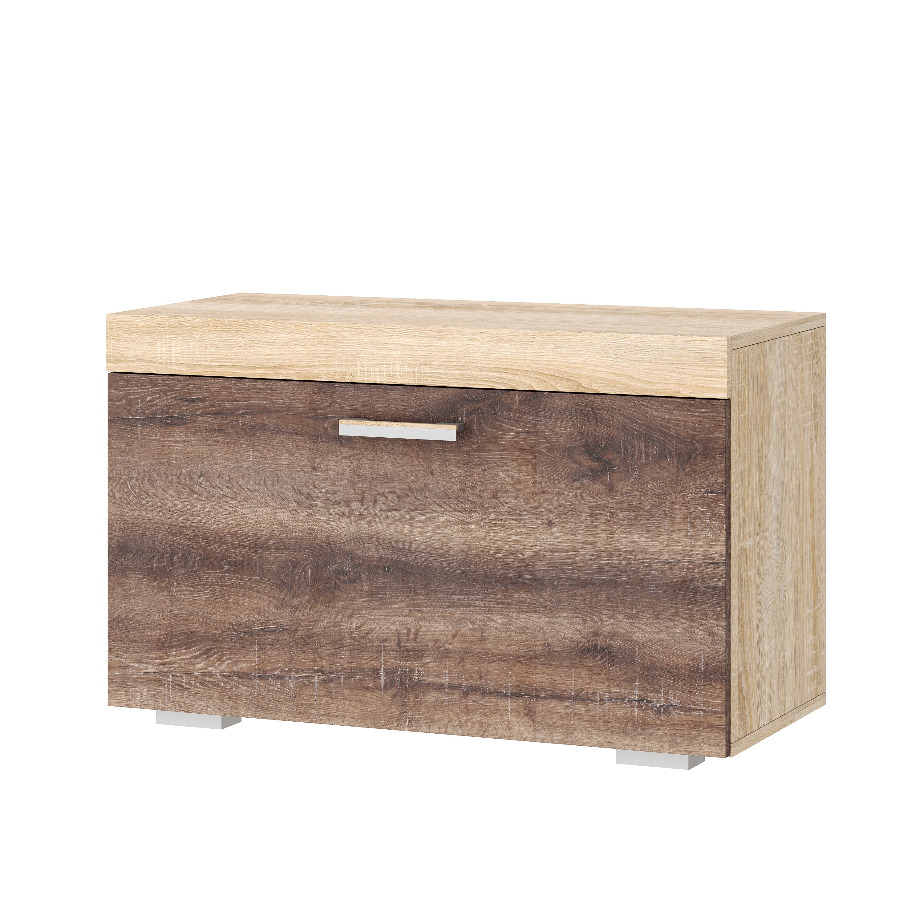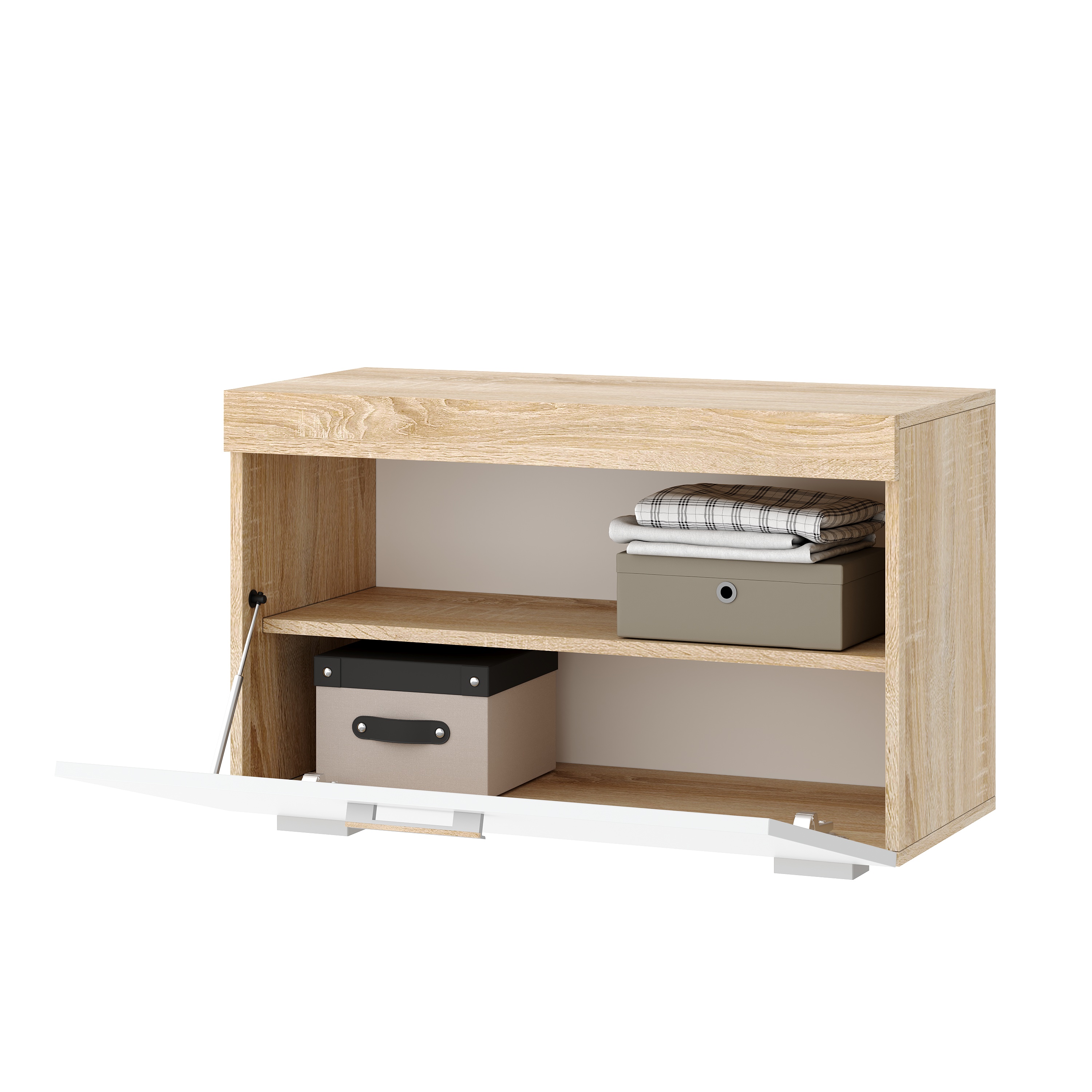 Обувница «СОНАТА» ОС-800 с откидным фасадом на газлифте, с полкой. . Верхняя часть тумбы обрамлёна профилем MDF.