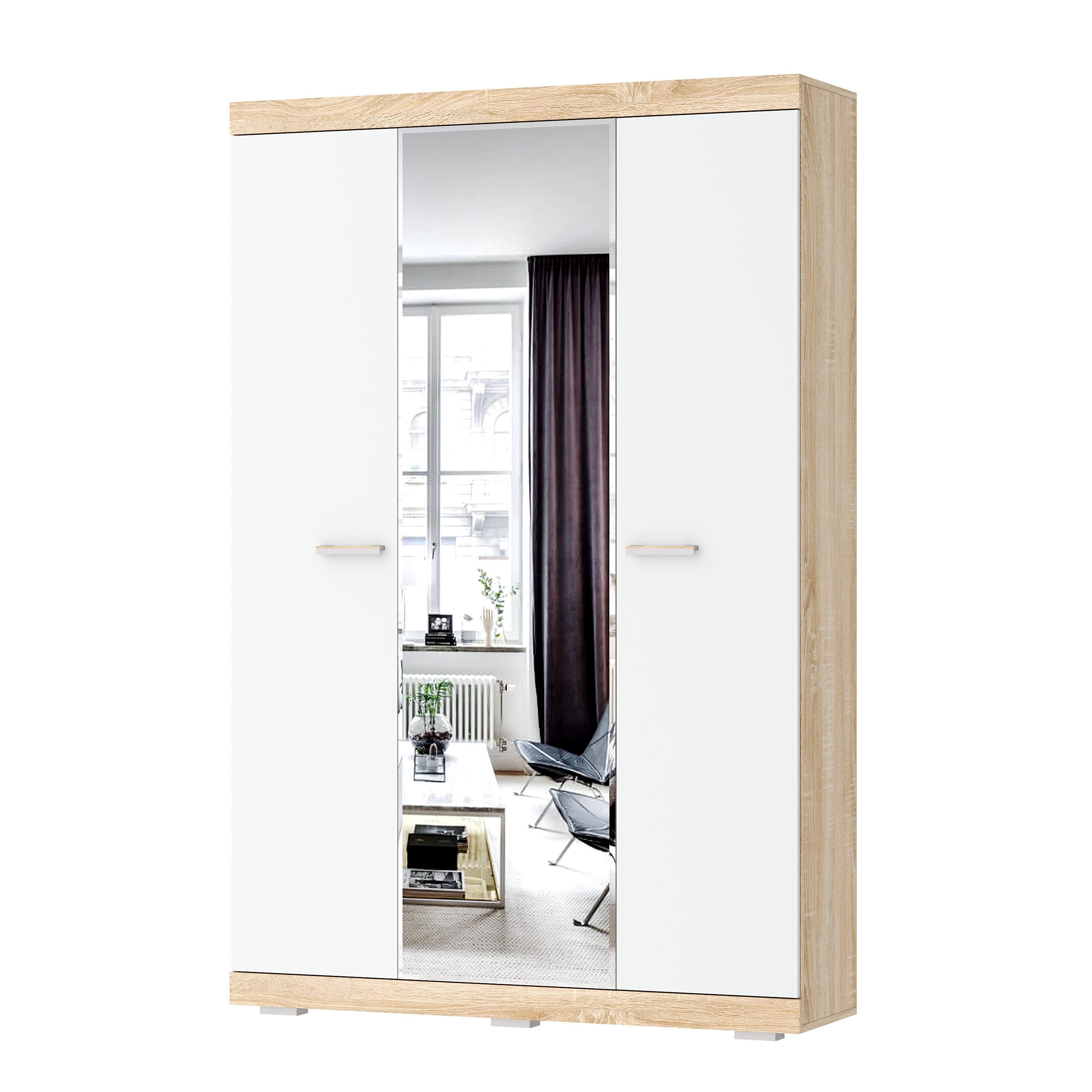 Шкаф «СОНАТА» ШСЗ-1300 трёхстворчатый с зеркалом, с полками и выдвижной штангой для верхней одежды. Верхняя и нижняя части шкафа обрамлёны профилем MDF. Зеркало выполнено с изящной и красивой обработкой «фацет» по периметру.