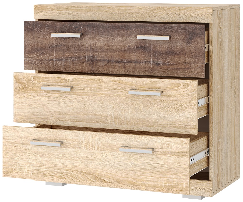 Комод КС-900 «СОНАТА» с 3-мя ящиками на направляющих полного выдвижения. Нижняя и верхняя части комода обрамлёны профилем MDF.