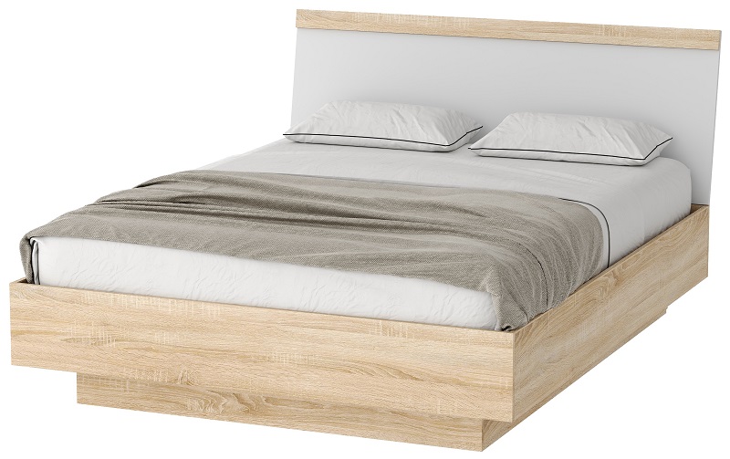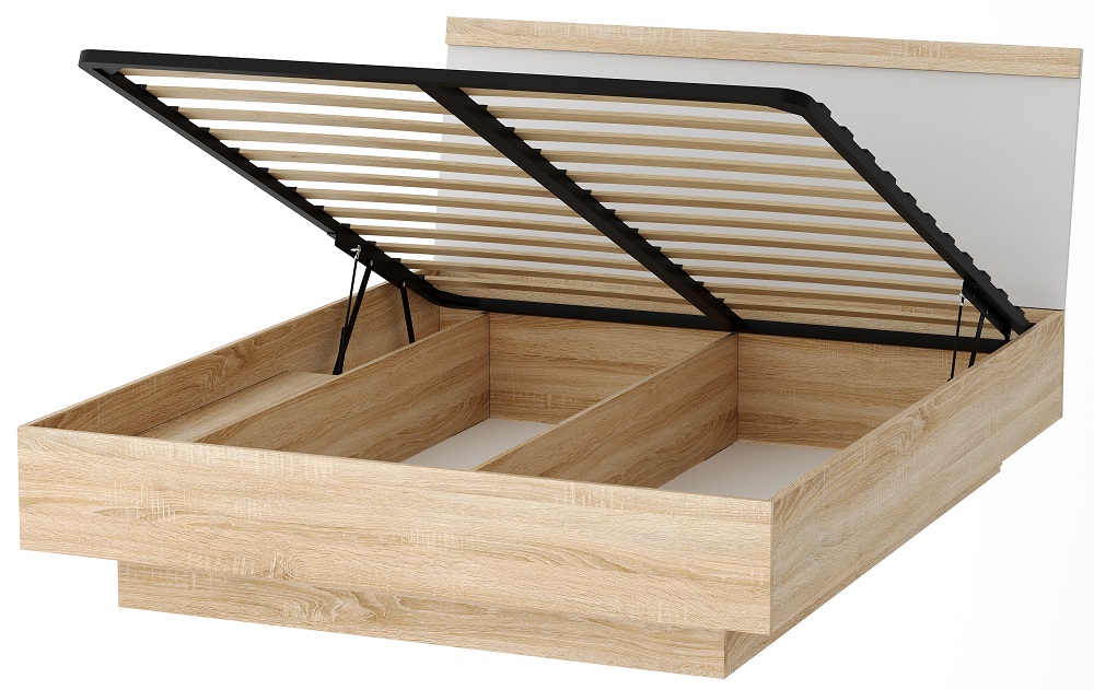 Кровать КРС-1400 "СОНАТА" с подъёмным механизмом Дуб Сонома - Белый глянец
