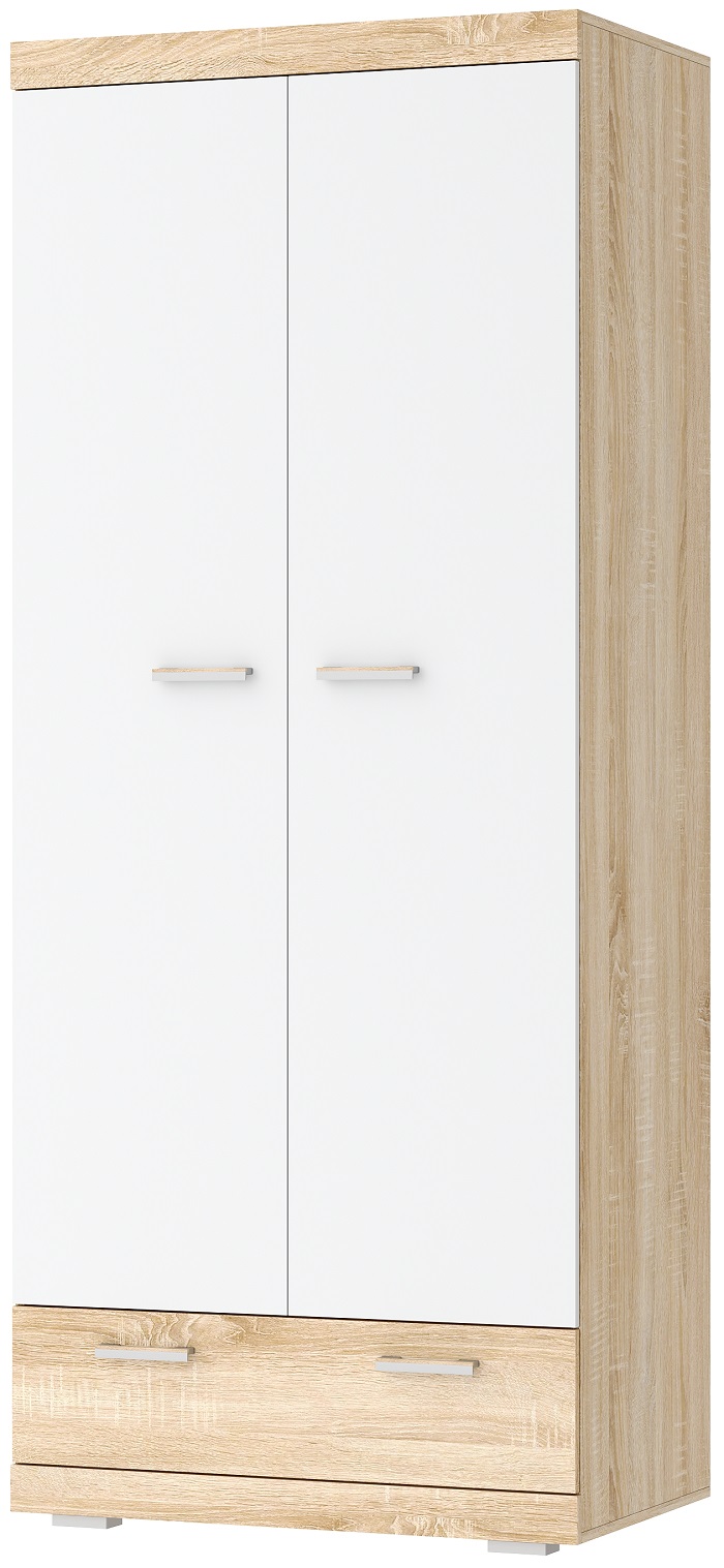Шкаф «СОНАТА» ШС-900 двустворчатый с полкой, металлической штангой для верхней одежды и ящиком на направляющих полного выдвижения. Верхняя и нижняя части шкафа обрамлёны профилем MDF. Опционально шкаф можно доукомплектовать полками для белья (868 х 550 мм - 3 шт).