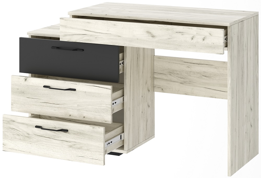 Стол косметический СКС-1200 «СОНАТА» с 4-мя ящиками на направляющих полного выдвижения. Устанавливается стильная металлическая ручка, чёрная, матовая. Опционально стол можно доукомплектовать Зеркалом «СОНАТА» ЗС-900.