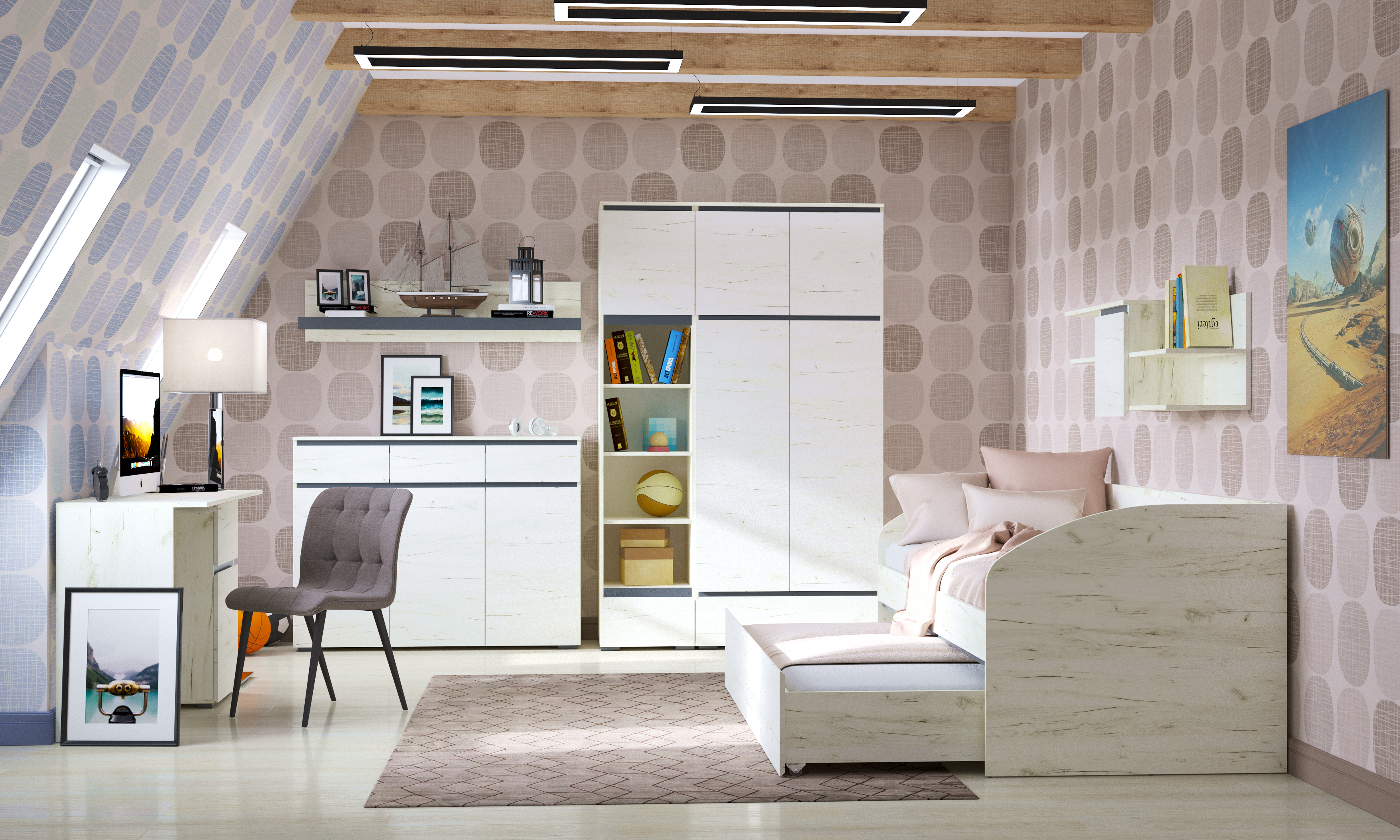 Спальня "ГРЕТТА" Композиция №3 Дуб Крафт белый/Антрацит