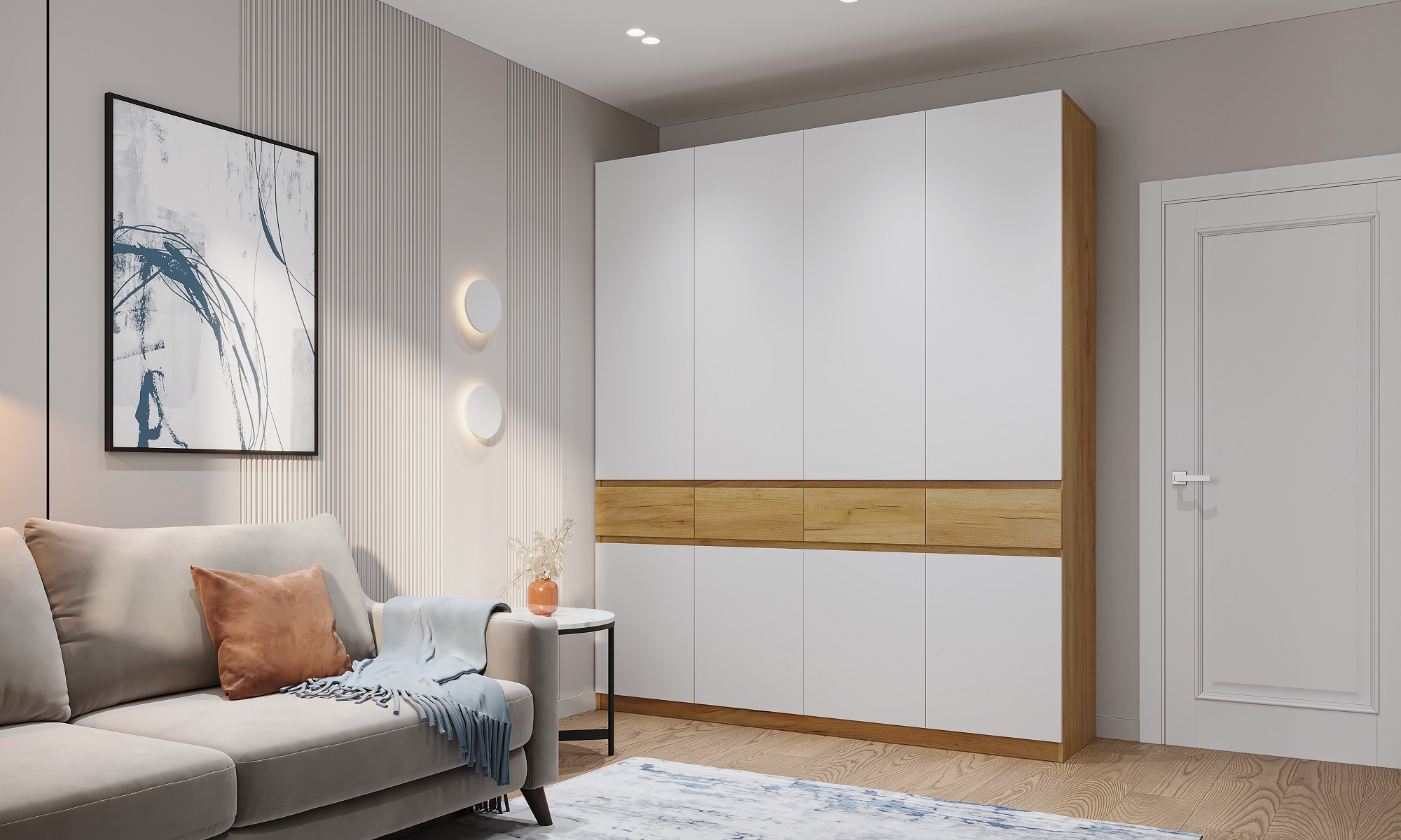 Шкаф 4-х ств. с ящиками Бостон Крафт золотой-Белый Бриллиант