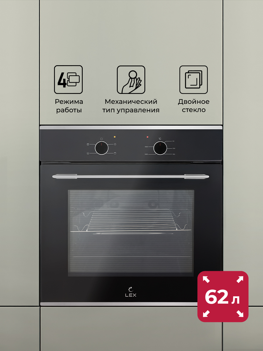 Встраиваемый электрический духовой шкаф EDM 045 предлагает хороший функционал по доступной цене. Модель имеет 4 режима работы и прекрасно справится с приготовлением как пиццы, которой нужен нагрев снизу, так и пирогов с румяной корочкой сверху благодаря расположению нагревательных элементов в разных частях рабочей камеры. Привычное механическое управление дает возможность легко и точно настраивать параметры, подсветка рабочей камеры упростит проверку готовности блюд. Тангенциальная система охлаждения предотвратит перегрев устройства и прилегающей мебели, а специальная эмаль и удобное крепление дверцы ускорят чистку.