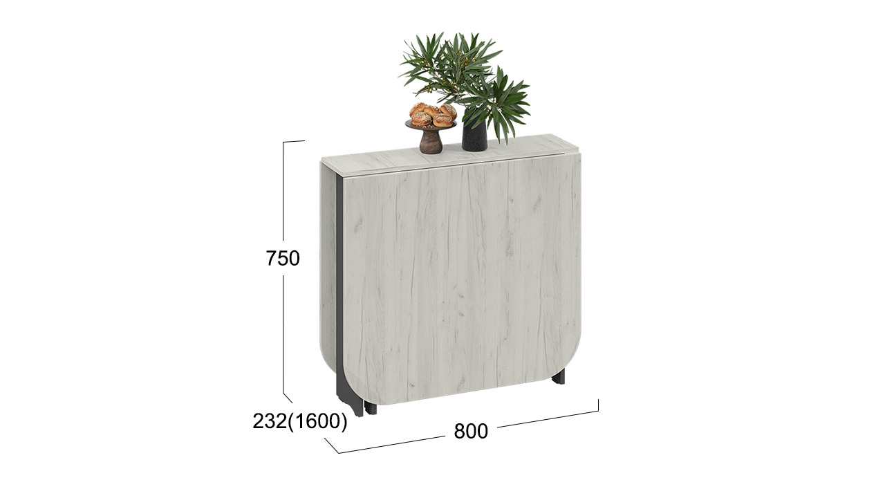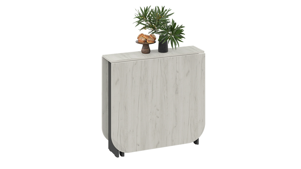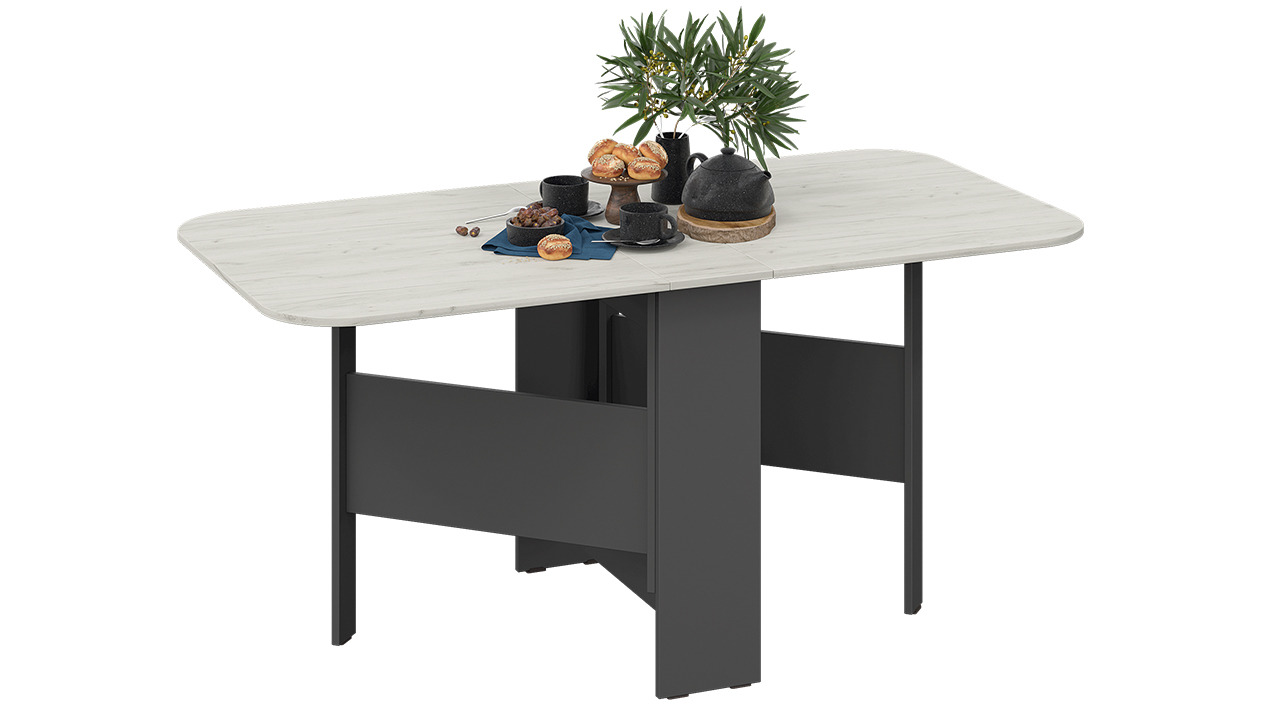 Столы-книжки отличаются главным достоинством – уникальное сочетание выгодной цены и эргономичности. Такая мебель пользуется все большей популярностью, она станет верным и надежным помощником на кухне или в гостиной, в повседневной жизни или во время домашних праздников. Стол-трансформер с механизмом «книжка» – это простой и очень удобный механизм с подъемными боковыми сегментами столешницы, которые при необходимости легко поднимаются и крепятся на опорах. В собранном виде стол-книжку можно использовать в виде обычного трюмо или узкого обеденного стола. Современное цветовое оформление. Изделие отличается продуманным дизайном, который гармонично впишется в интерьер любой комнаты. Разнообразие декора позволит адаптировать меблировку под любое стилистическое направление. Материалы. Модель изготовлена из ЛДСП 16 мм с обработкой торцов всех деталей кромкой ПВХ 0,4 мм. Функциональность. Столы-книжки удобны, практичны и просты в эксплуатации. Раскладной механизм дает возможность менять размеры за кратчайшее время, позволяя из небольшого и узкого стола получить полноценный обеденный. Тем самым, данный вид модели в сложенном положении занимает немного места, сохраняя полезную площадь, а если разложить стол-книжку, за ним может поместиться большое количество людей. Прямоугольная и квадратная формы столешницы пользуются наибольшей популярностью. Для того чтобы сэкономить пространство в кухне, модель можно поставить к стене торцом, либо широкой стороной.
