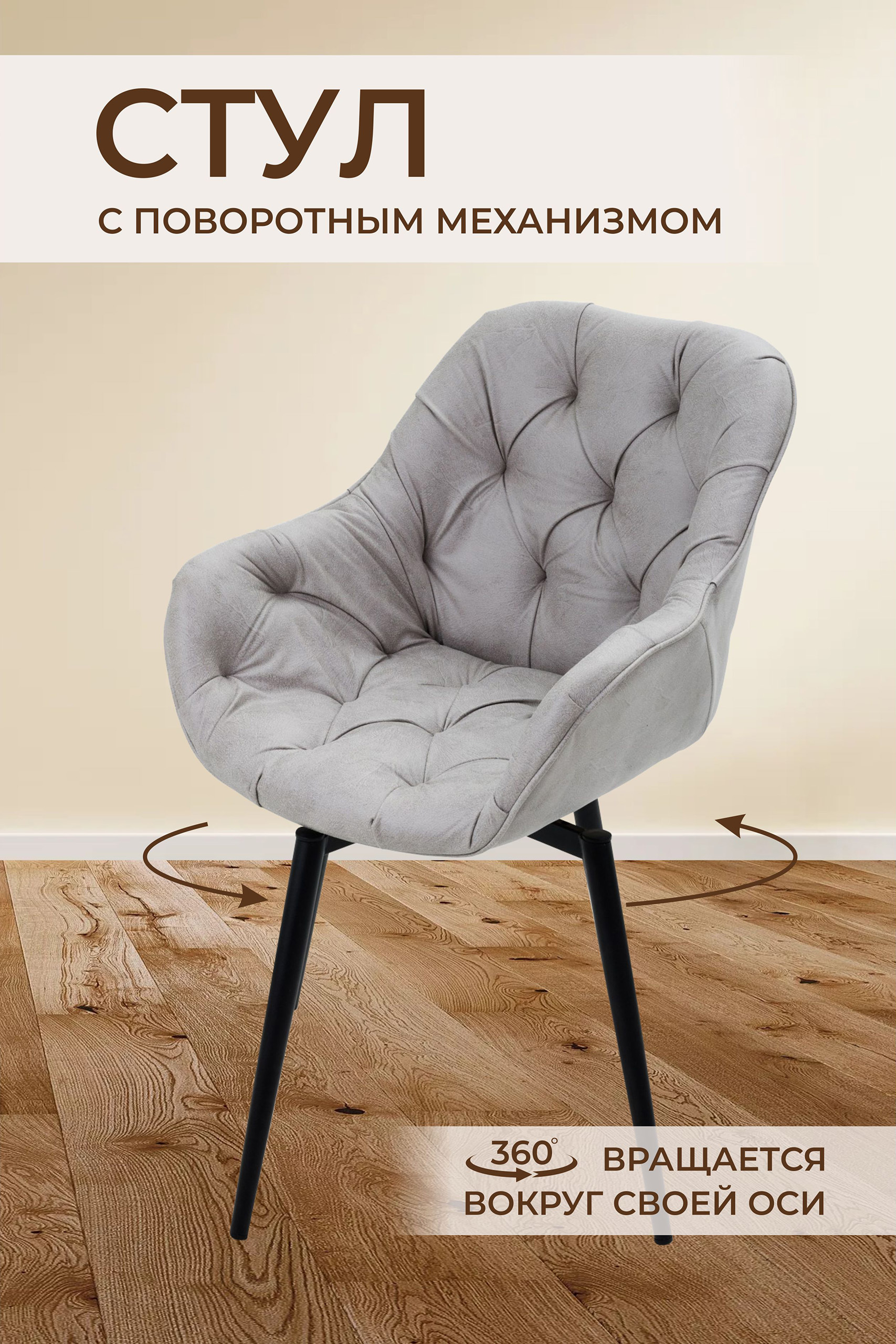 Вращение на 360 градусов: Оцените полную свободу движений! Благодаря поворотному механизму на 360 градусов, вы сможете легко разворачиваться, общаться с близкими или наслаждаться видом из окна, не вставая со стула. Это идеальное решение для динамичной жизни и уютных вечеров.