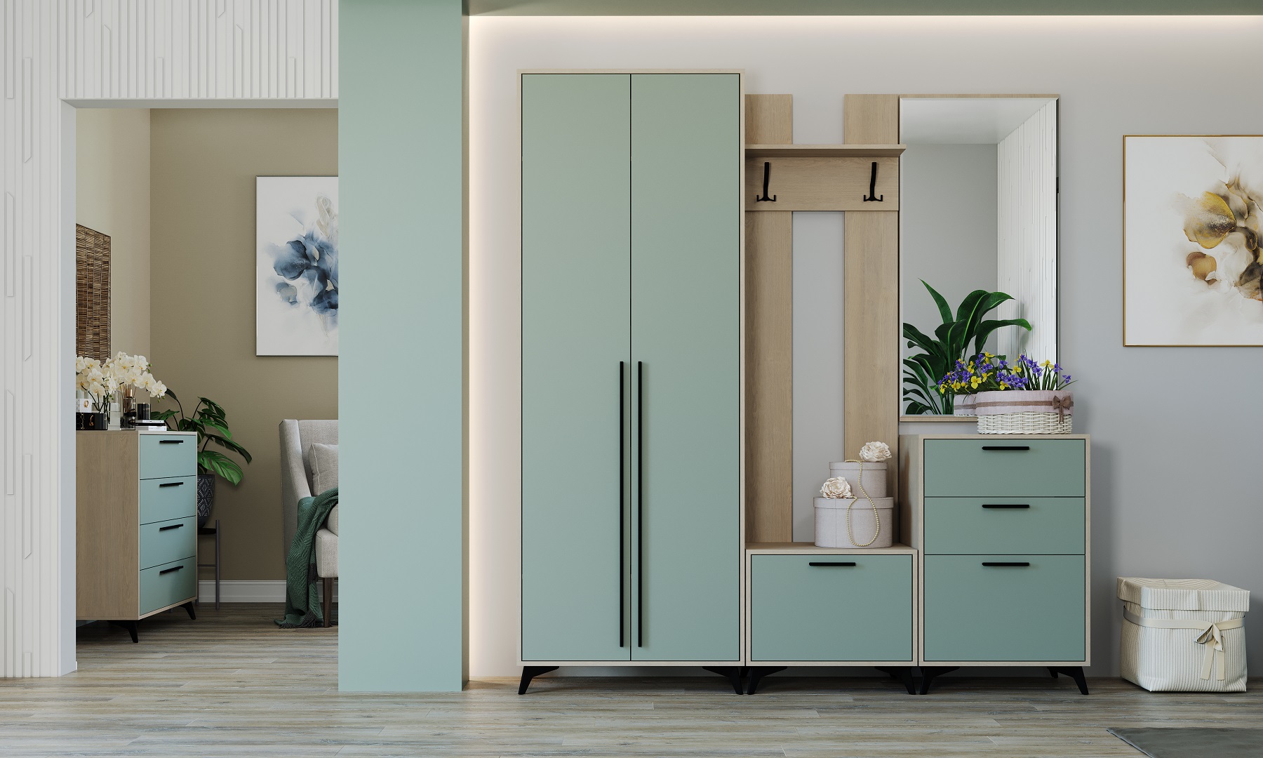Модульная прихожая «ЕВА» предлагает только лучшие решения, применяемые в качественной современной корпусной мебели. «ЕВА» - коллекция с максимально расширенной свободой выбора из 6 расцветок фасадов. В коллекцию вошли модульная гостиная, прихожая и спальня. Наличие множества элементов, созданных для применения в быту, удобных для размещения предметов интерьера, одежды и вещей, делают коллекцию мебели «ЕВА» универсальной и желанной в любом доме. Основные преимущества и особенности коллекции: