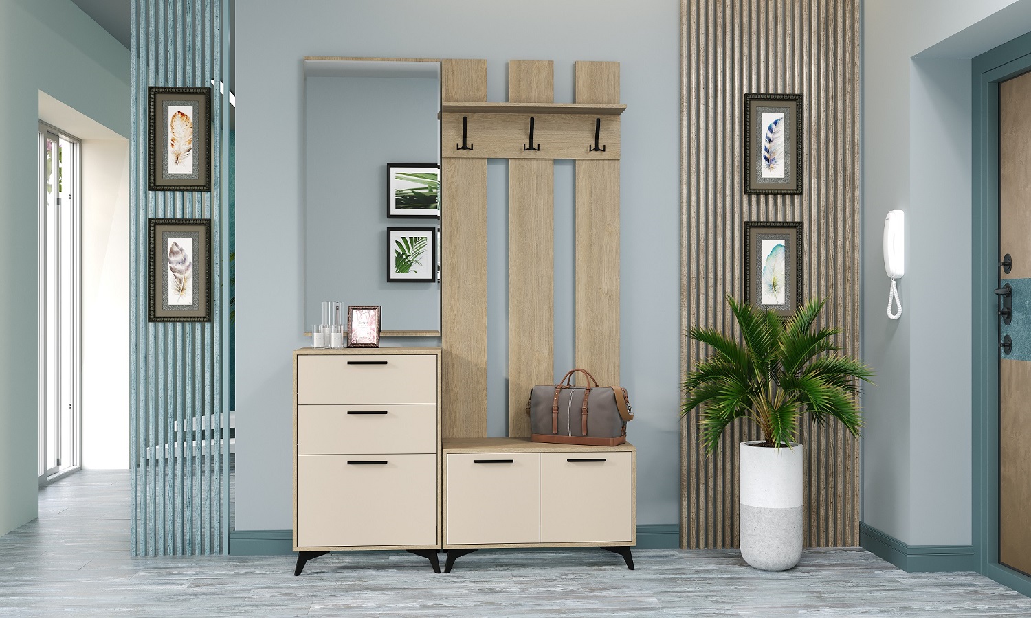 Прихожая "ЕВА" Композиция №2 Дуб Экспресив/Глиняный серый