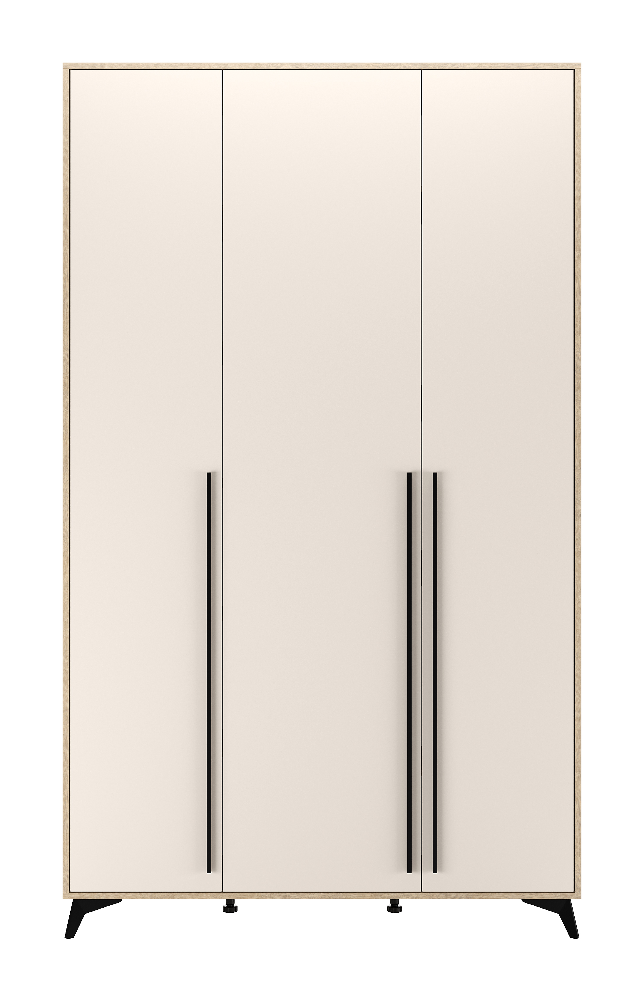 Шкаф 1300 3С «ЕВА» с выдвижными металлическими штангами, с полками. Фасады и лицевой периметр шкафа обработаны кромкой 1 мм. Чёрные металлические ручки-рейлинги и ножки-опоры