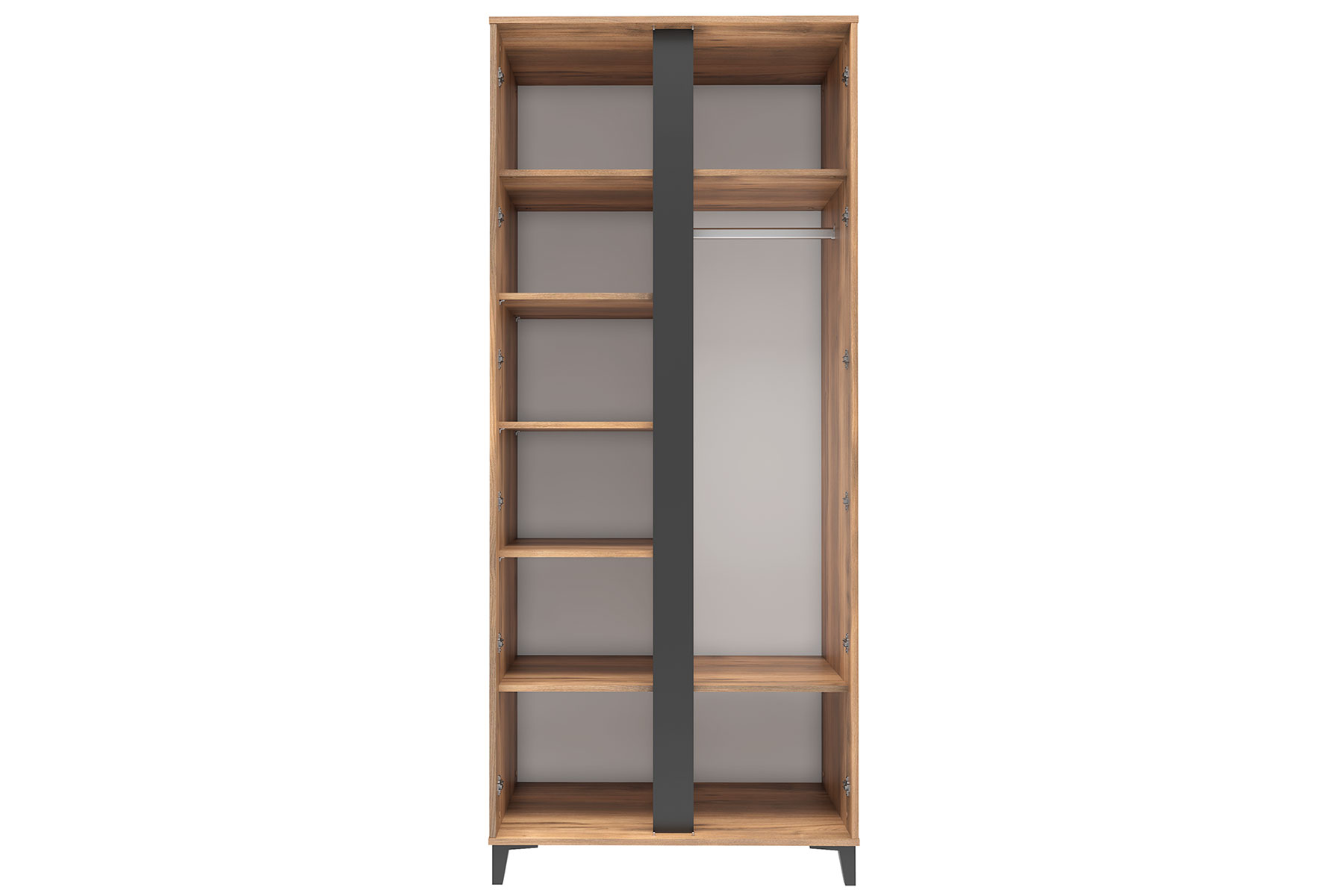 Шкаф «Богемия» изготовлена из высококачественных материалов. Корпус изготовлен из ламинированной древесностружечной плиты толщиной 16мм. Фасады выполнены из МДФ толщиной 19мм и покрыты пленками ПВХ с эффектом Soft touch. Это обеспечивает не только стильный внешний вид, но и приятные тактильные ощущения. Петли четырехшарнирные с системой плавного закрывания. Опоры пластиковые черные. В плотяном шкафу предусмотрена установка штанги для одежды. Экологически безопасное ЛДСП с классом эмиссии летучих веществ Е1
