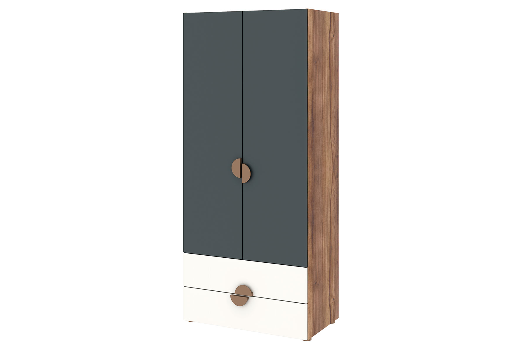 Шкаф 2-х дверный с ящ. Тризиль 476.01 с антресолью Дуб Барокко/Зеленый камень/Белый