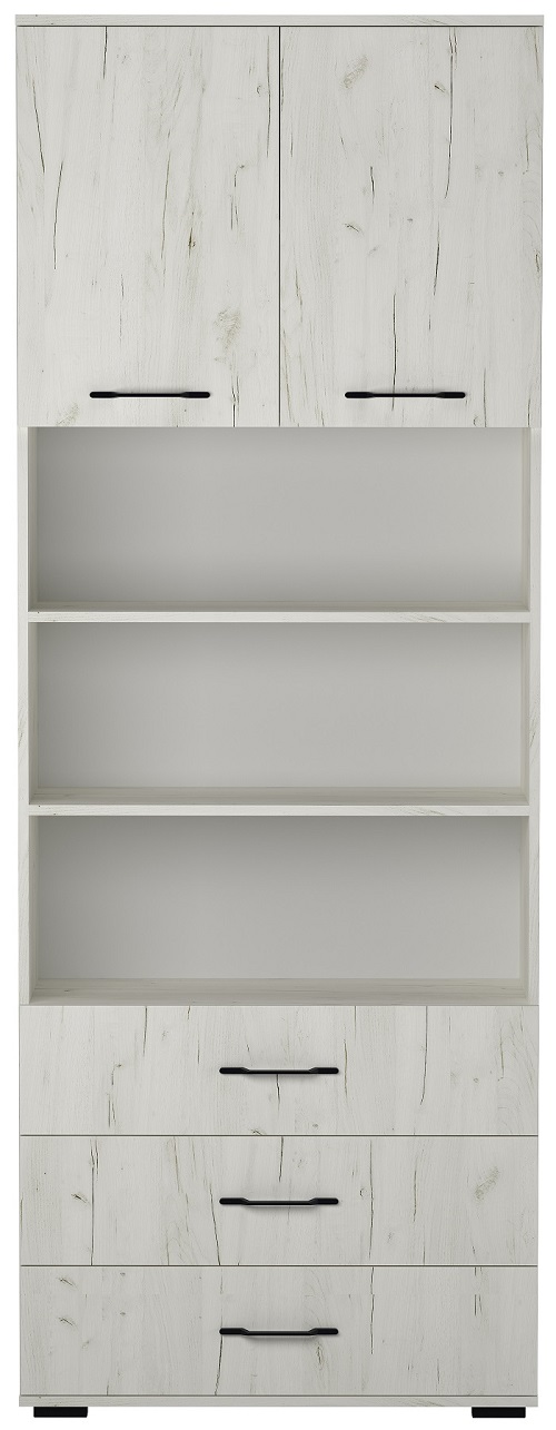 Шкаф «ИТАЛИЯ» ШК3Я-800 двустворчатый с 3-мя ящиками на роликовых направляющих, с полками. Устанавливается стильная металлическая ручка, чёрная, матовая.