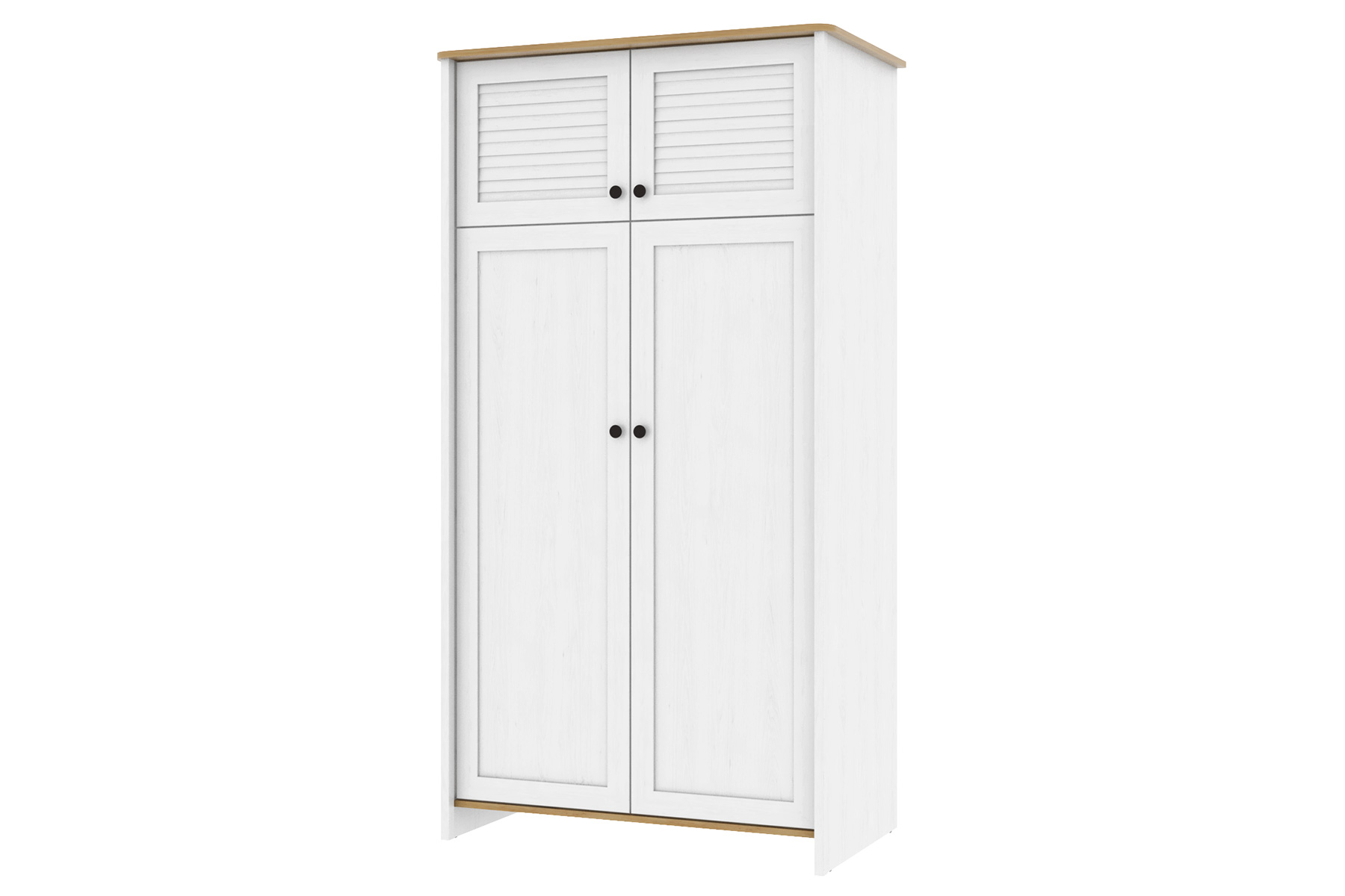 Габариты модели — 1060 мм в ширину, 1995 мм в высоту и 630 мм в глубину. Такой размер делает шкаф универсальным: он достаточно вместителен, чтобы разместить сезонную одежду, бельё и аксессуары, но при этом не перегружает пространство. Внутри — всё, что нужно для удобного хранения: полки, штанга и надёжные секции.