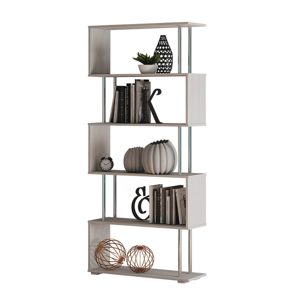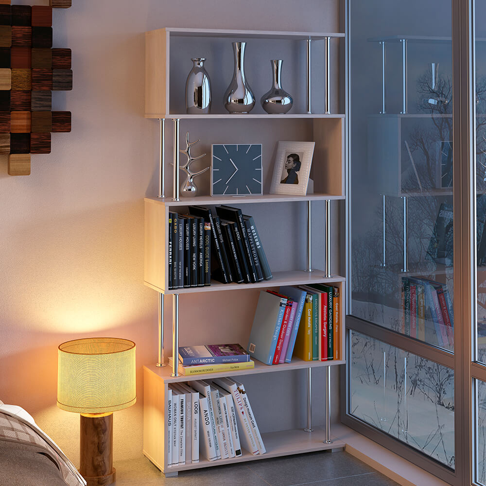 Стеллаж 850 – очень вместительный и при этом визуально легкий предмет интерьера. На нем вы можете разместить все необходимые вещи, включая книги, предметы декора, домашние цветы или фотографии. Невесомости основным полкам стеллажа, выполненным в светлом цвете лоредо, придают хромированные штанги.