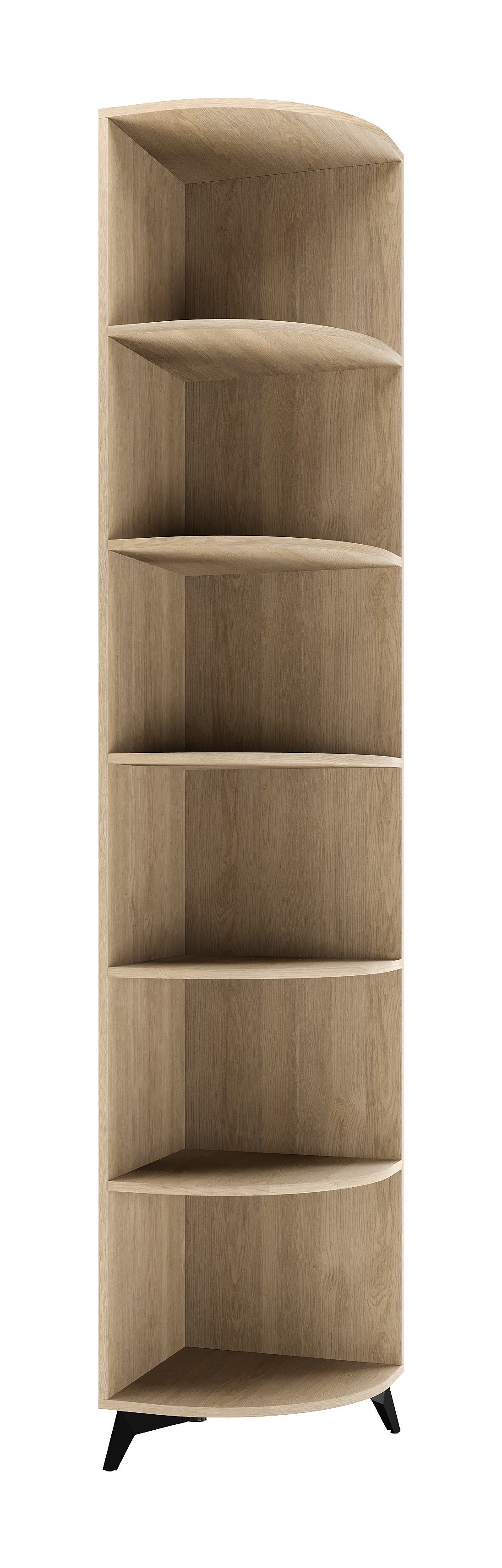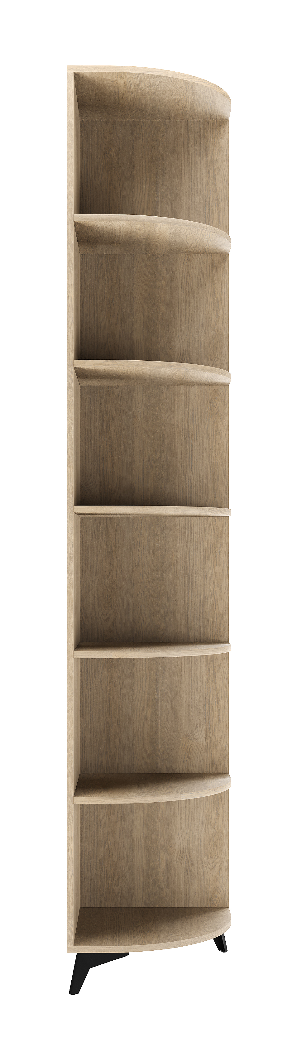 Угловое окочание «ЕВА» с закруглёнными полками, обработано кромкой 1 мм. Чёрные ножки-опоры.