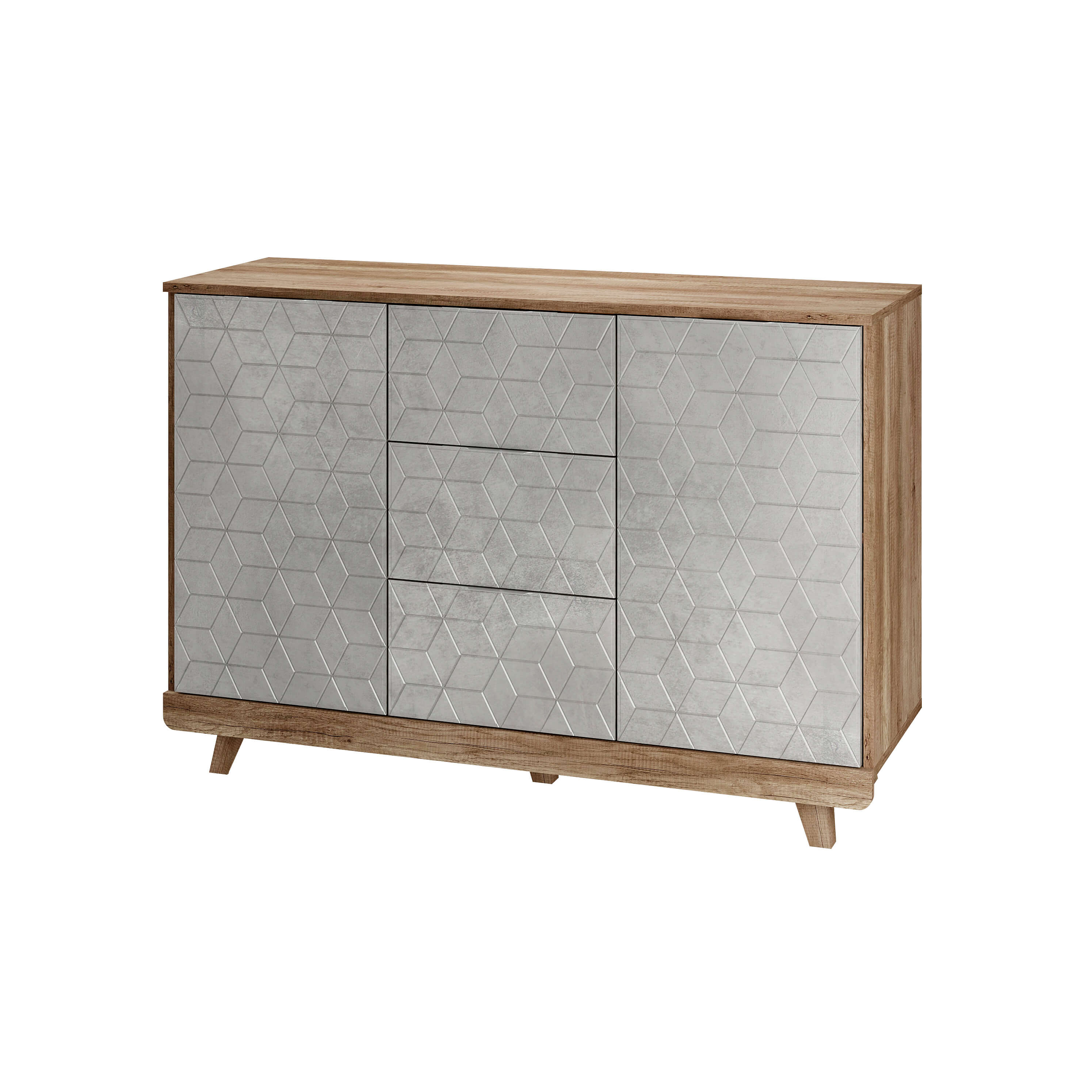 Особый шарм комодам «Мегаполис» придают трендовые цветовые решения фасадов, которые идеально вписываются практически в любой стиль. Оригинальная фрезеровка и эксклюзивная фотопечать выглядит очень эффектно и эксклюзивно. Пыли и грязи на таких поверхностях совершенно не видно, а это огромный плюс для домохозяек! Комод (КМ-15) выдержан в общей стилистике «Мегаполис» и состоит из двух распашных по бокам и трёх выдвижных по центру вместительных ящиков на шариковых направляющих с удобной системой хранения. Полезное пространство распашных ящиков разделены полками.