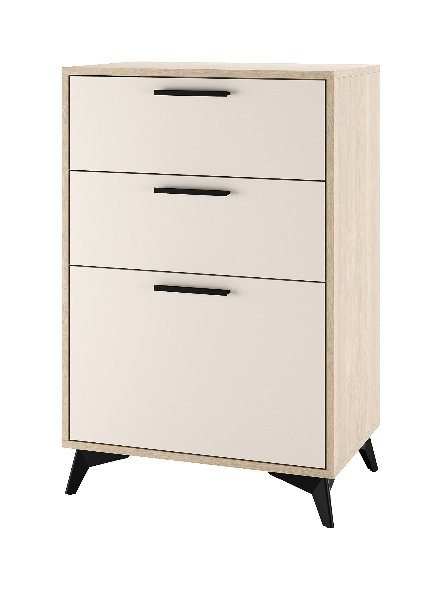 Тумба 600 1С2Я «ЕВА» с откидным фасадом (газлифт), с ящиками на направляющих скрытого монтажа с доводчиками. Фасады, крышка и лицевой периметр тумбы обработаны кромкой 1 мм. Чёрные металлические ручки и ножки-опоры.