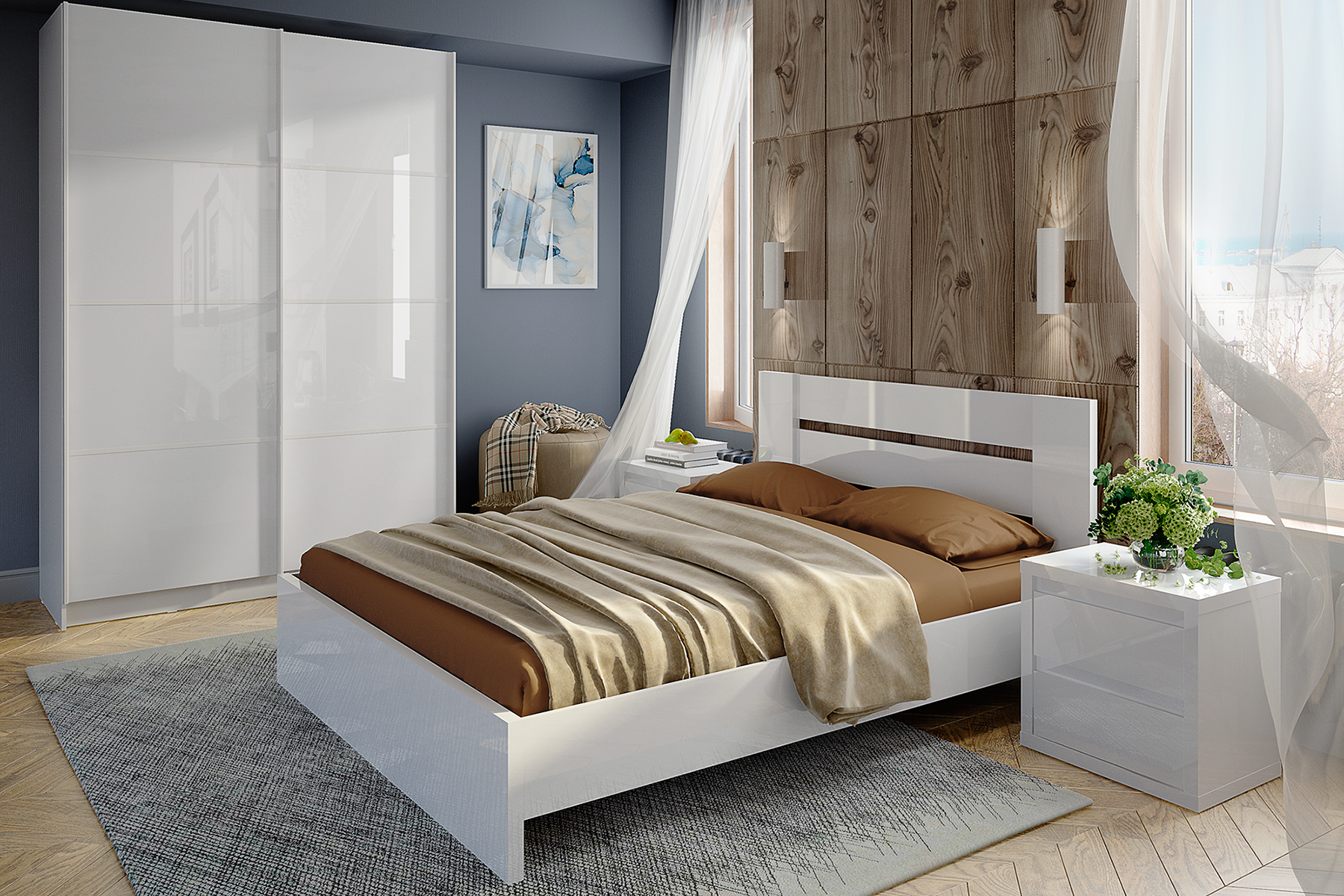 - Кровать с прикроватными тумбочками «Норден»