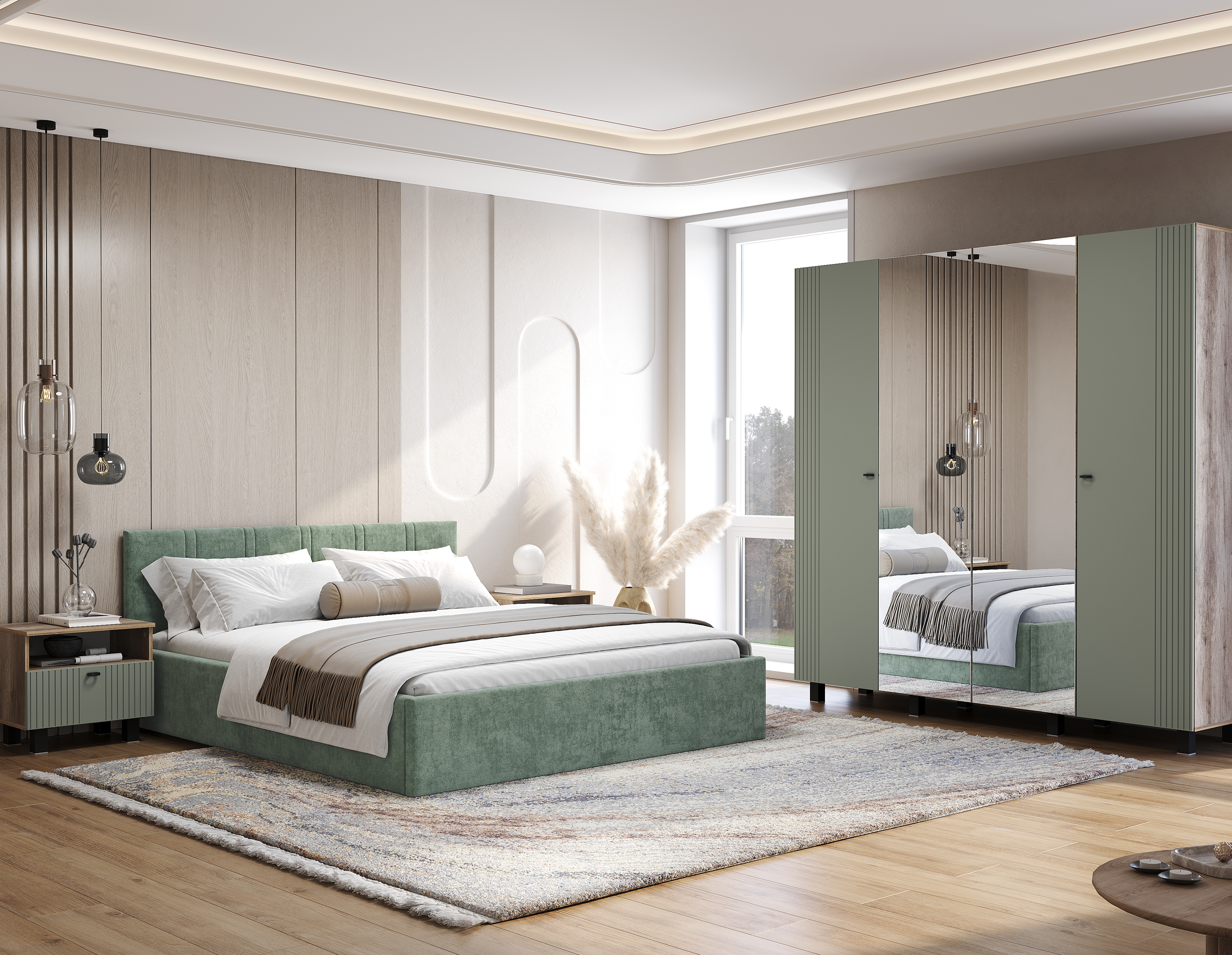 «Олива» - это элегантное и функциональное решение для любого интерьера. Коллекция представлена в трендовых пудровых оттенках. Фрезеровка на фасадах создает интересные текстурные контрасты и визуальные акценты. Кроме того, этот элемент декора также помогает скрыть мелкие загрязнения, что упрощает уход за мебелью. Черные металлические накладные ручки и петли с доводчиками обеспечивают удобство в использовании.