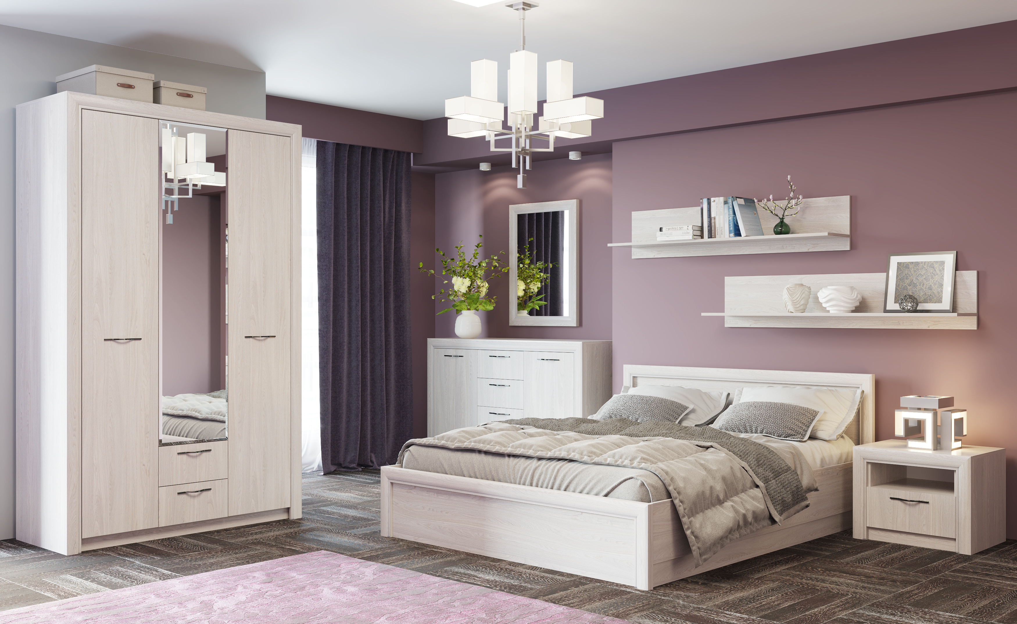 Спальня "ОКТАВА". Композиция №7 Ясень Анкор светлый