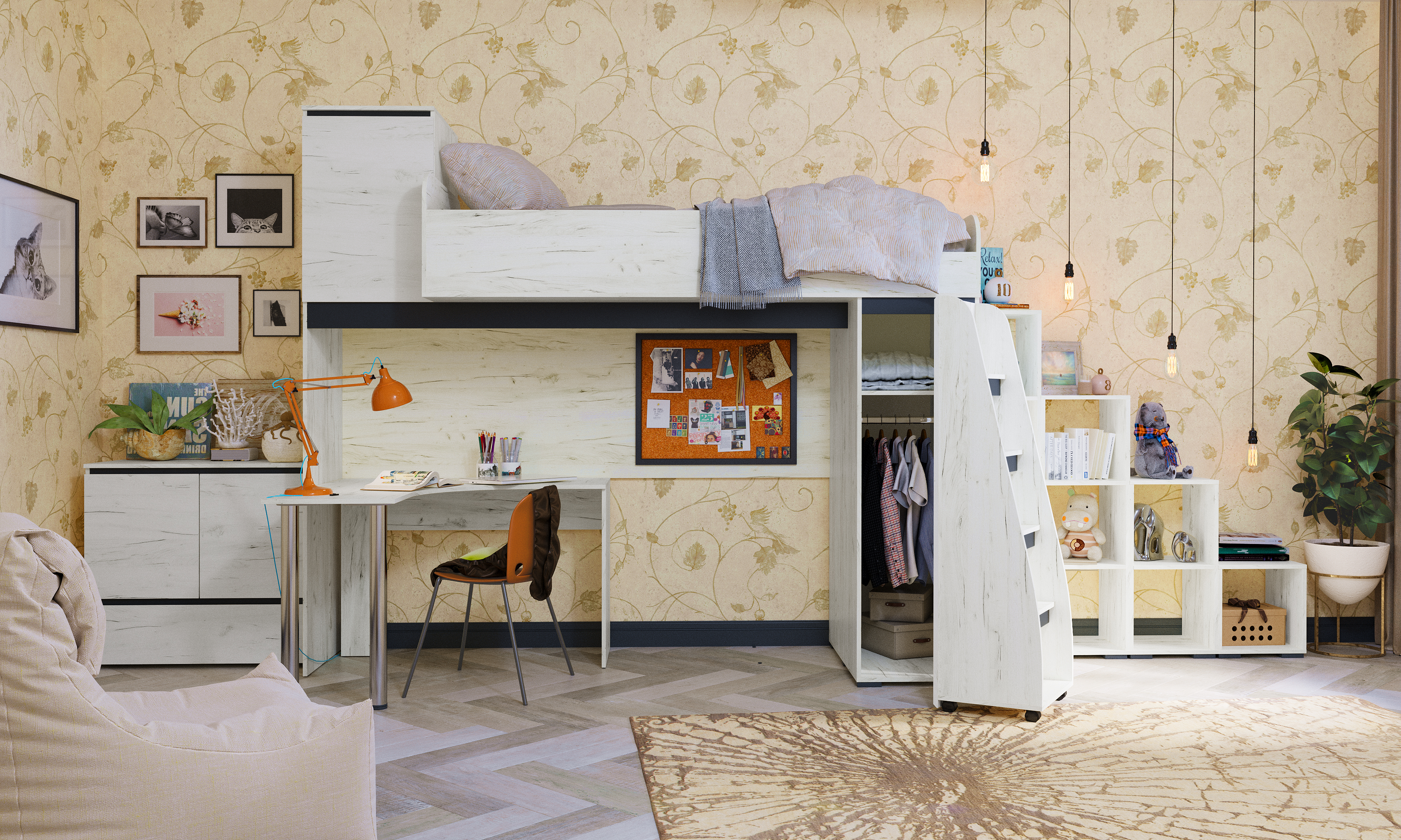 Спальня "ГРЕТТА" Композиция №5 Дуб Крафт белый/Антрацит