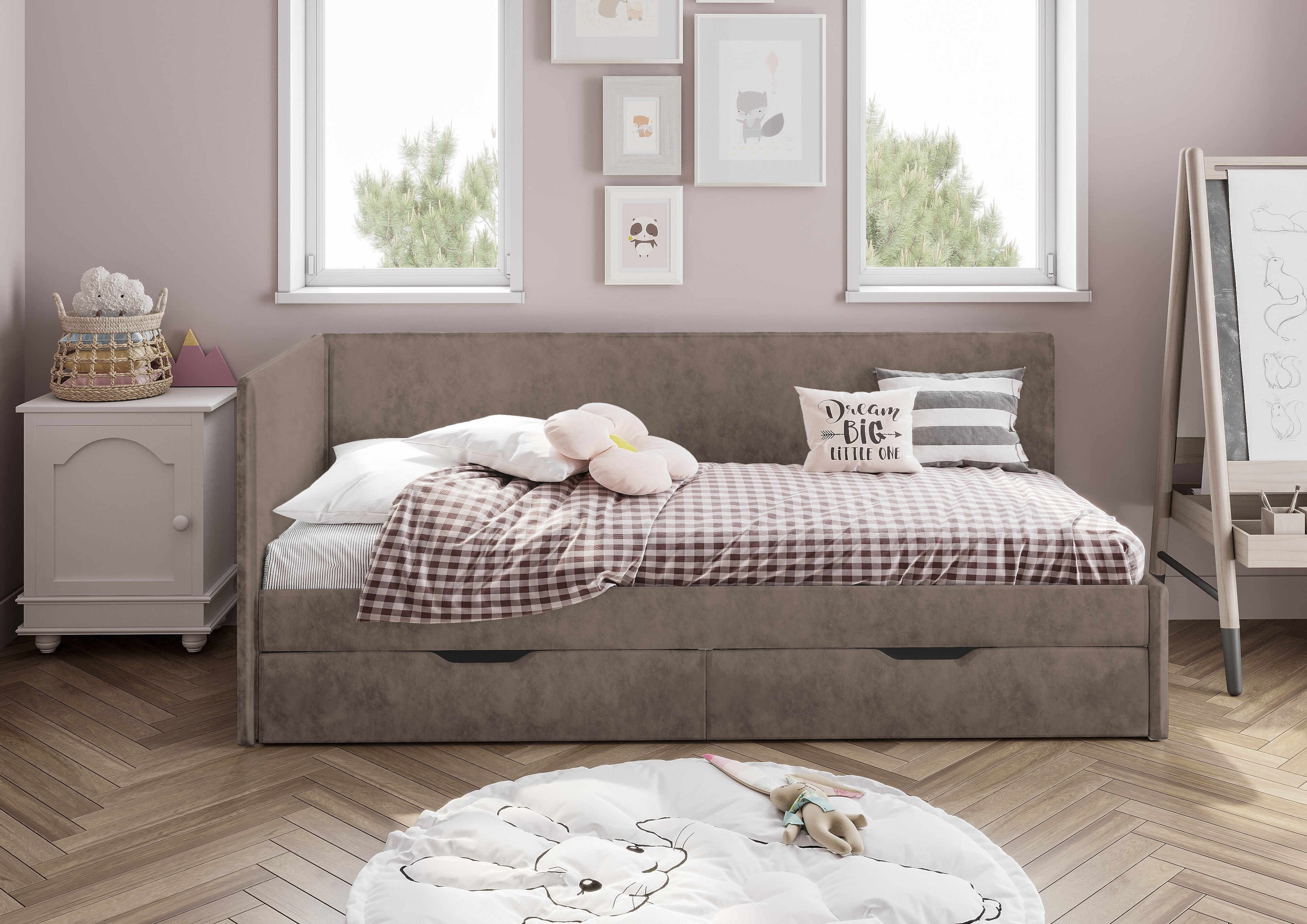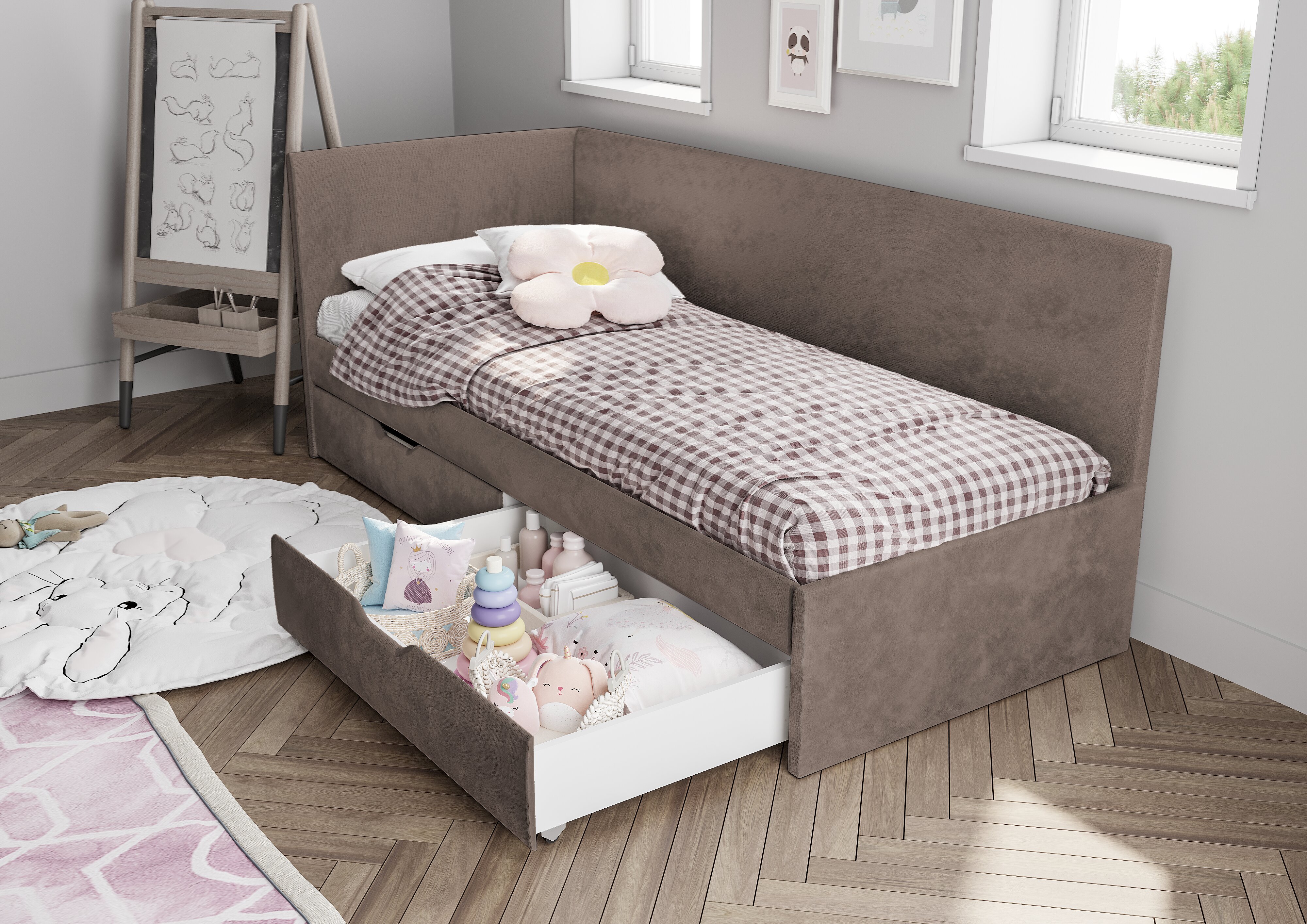 Кровать «Лео» - лучший выбор для детской комнаты. Плавные и лаконичные линии конструкции создадут атмосферу гармонии и спокойствия. Одно из важных преимуществ кровати – это мягкая обивка из велюра, что обеспечивает более комфортное и безопасное использование. Корпус – ЛДСП/ДСП 16 мм, оклеенный поролоном 20 мм и тканью велюр. Фасад – ЛДСП 16 мм, оклеенный поролоном 20 мм и тканью велюр. Ткань велюр с эффектом хамелеона, не оставляет следов. Этот эффект достигается за счет специальной обработки материала, который содержит глянцевые частицы, отражающие свет под разными углами.