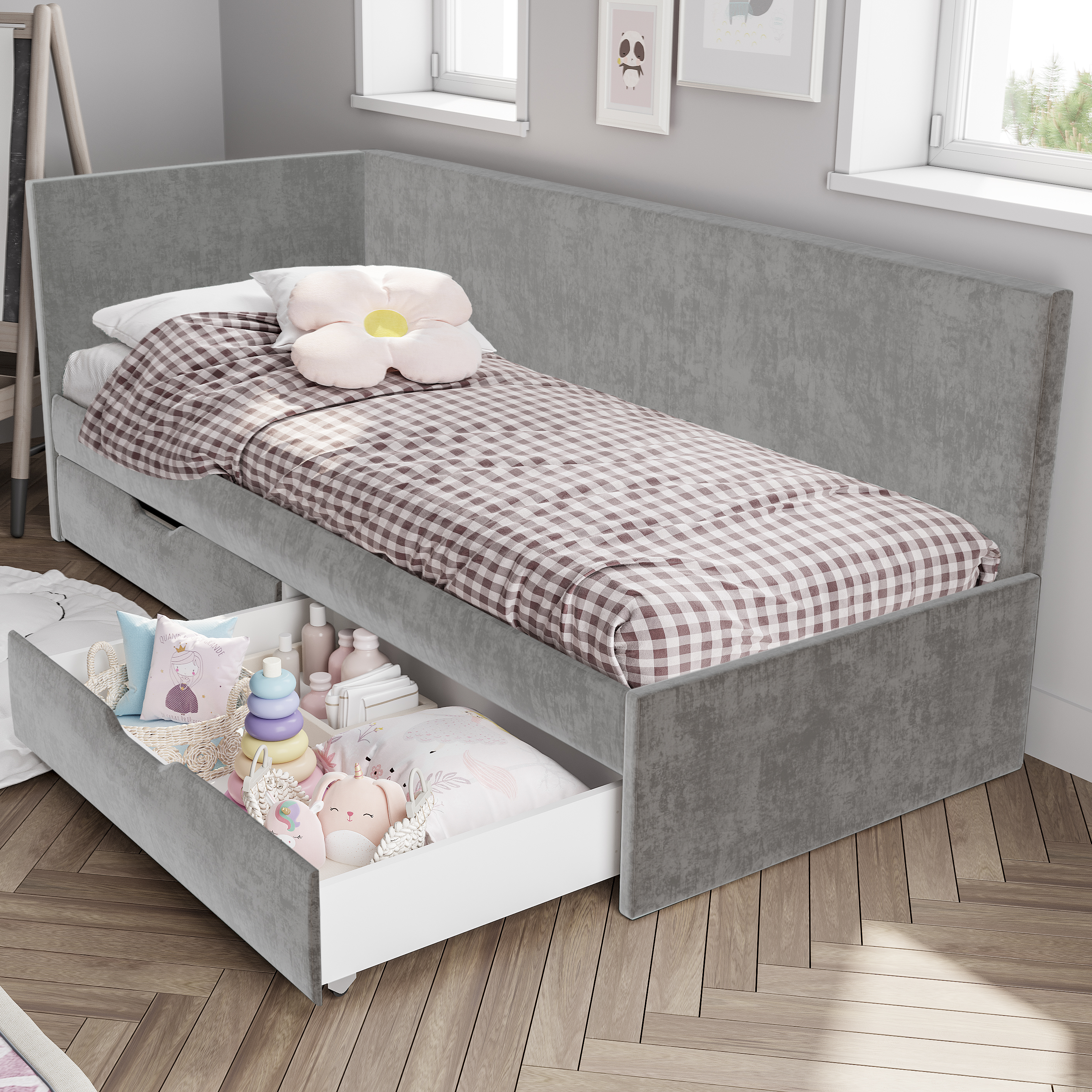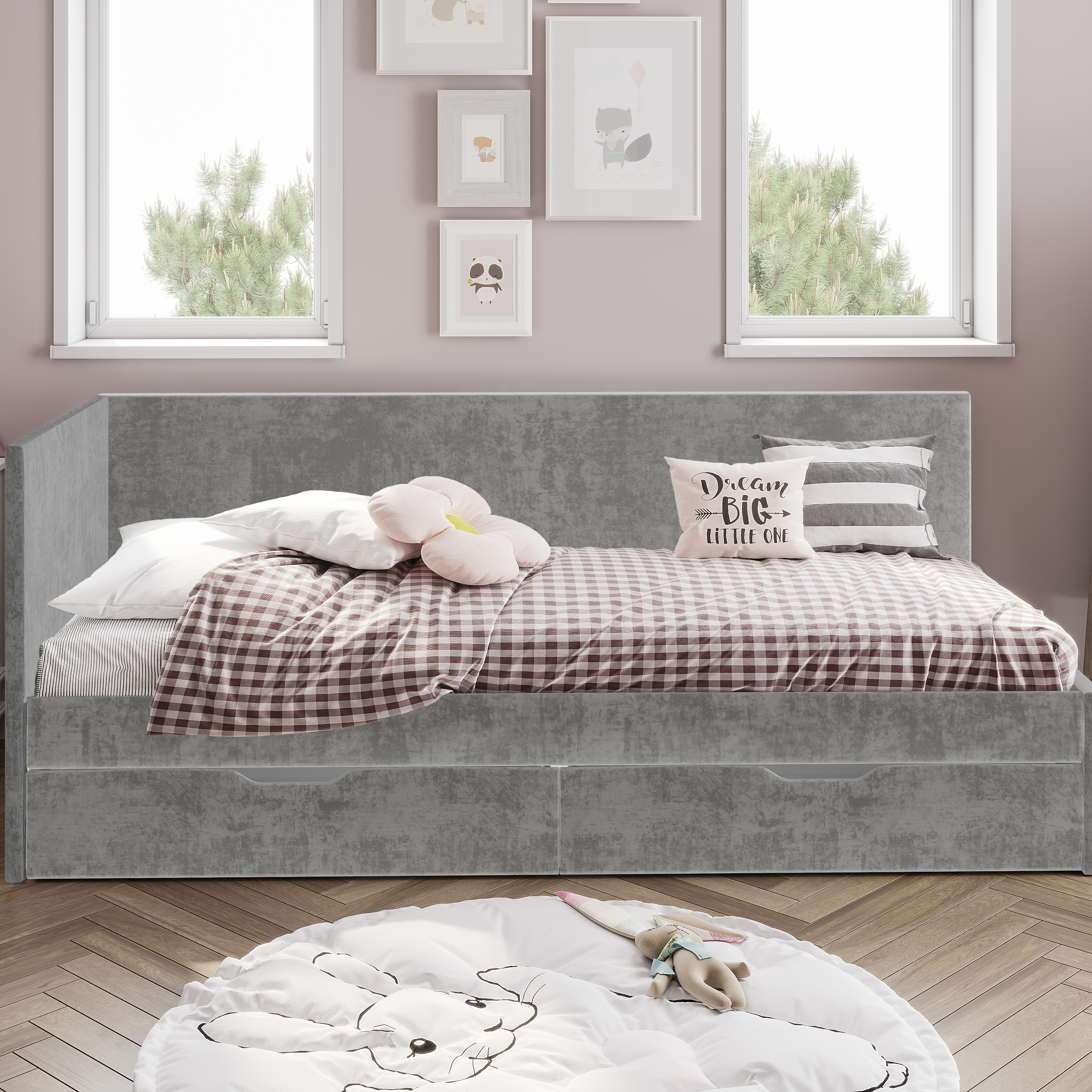 Кровать «Лео» - лучший выбор для детской комнаты. Плавные и лаконичные линии конструкции создадут атмосферу гармонии и спокойствия. Одно из важных преимуществ кровати – это мягкая обивка из велюра, что обеспечивает более комфортное и безопасное использование.