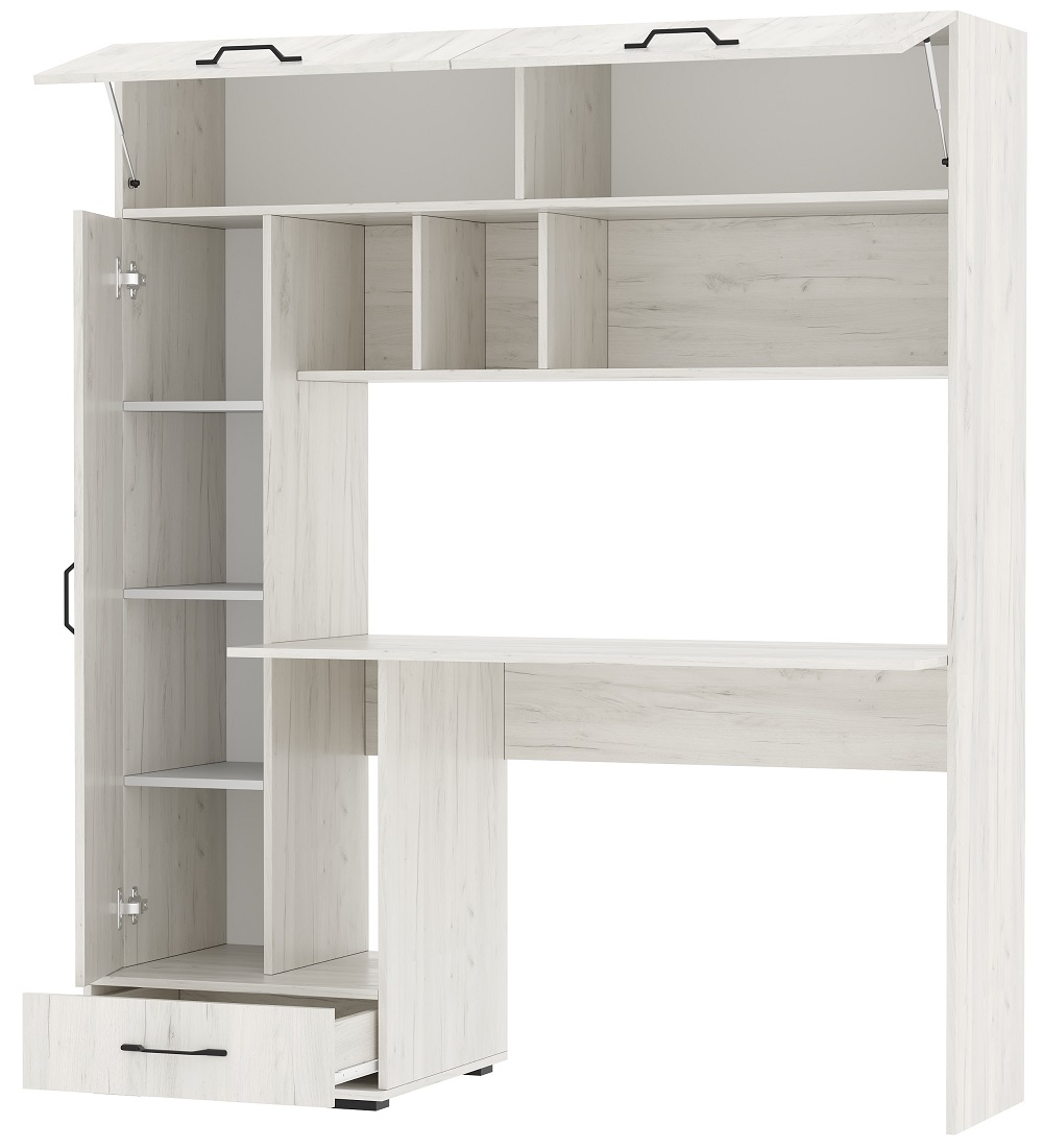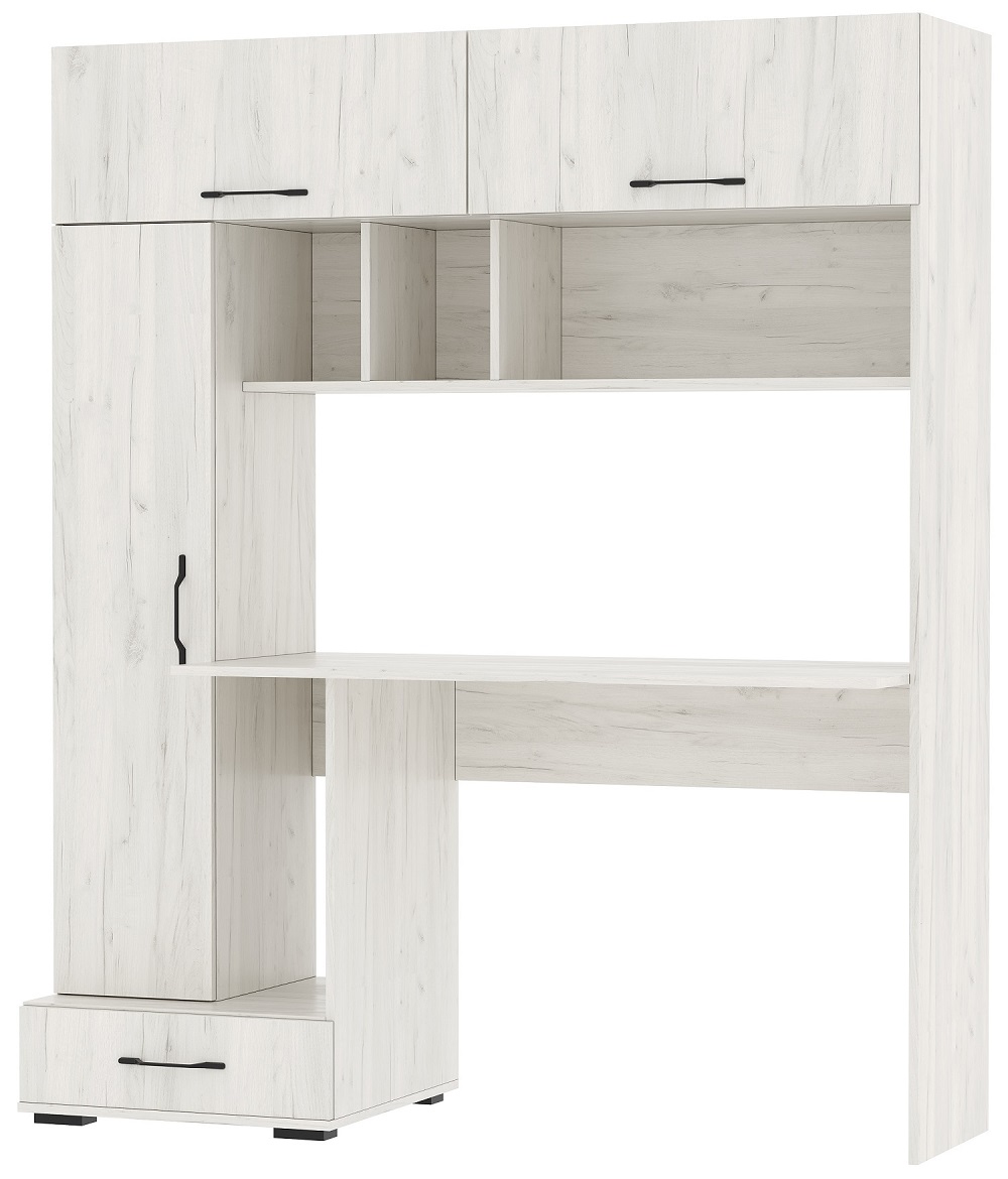Письменно-компьютерный стол ПКС-1 с ящиком на роликовых направляющих. Для удобства открывания и удержания фасадов в открытом положении устанавливаются газлифты. Столешница обработана кромкой толщиной 1 мм, что делает работу за столом более комфортной и удобной. Чёрная матовая металлическая ручка. Рабочая зона стола 1200 х 430 х 570 мм.