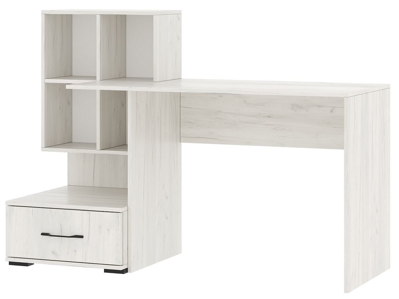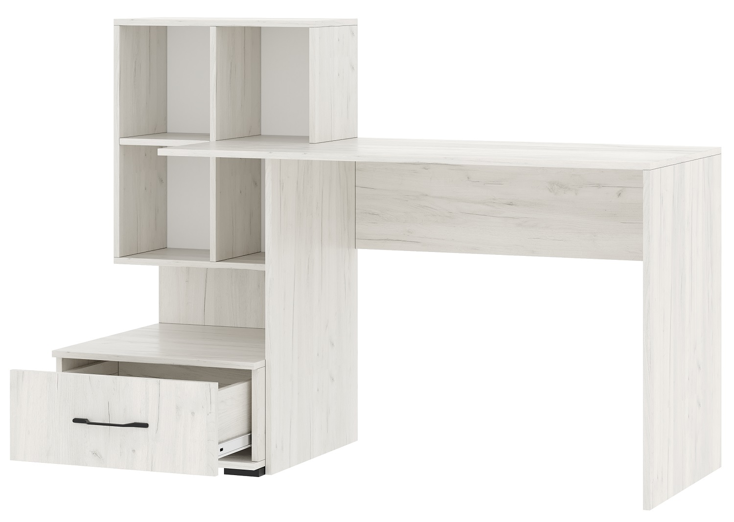 Письменно-компьютерный стол ПКС-10 с ящиком на направляющих полного выдвижения. Компактный и современный стол в современном стиле кубизма. Столешница обработана кромкой толщиной 1 мм, что делает работу за столом более комфортной и удобной. Чёрная матовая металлическая ручка. Рабочая зона стола 1200 х 570 мм