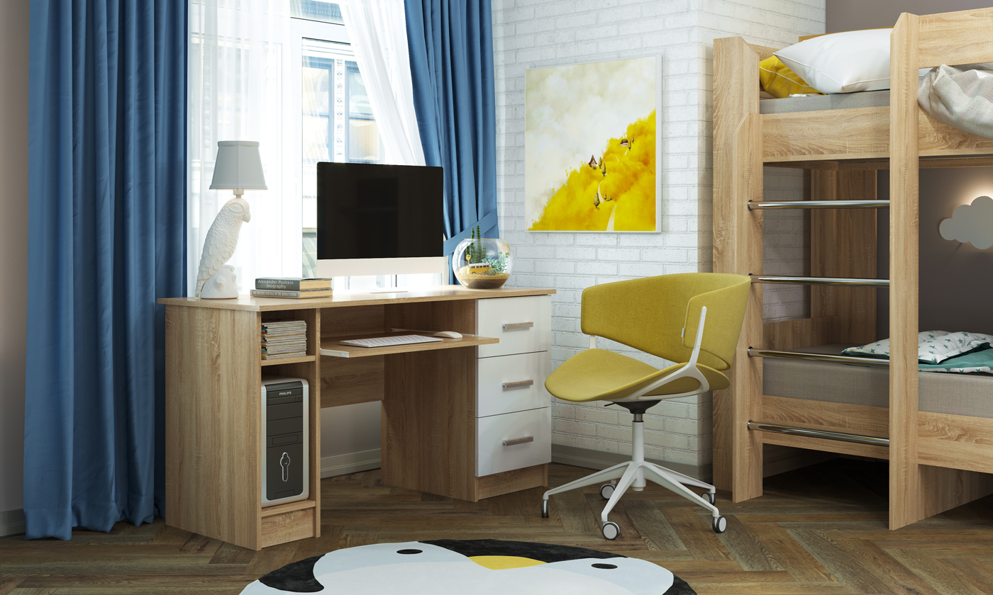 Письменно-компьютерный стол «ПКС-10» Сонома-Белый глянец