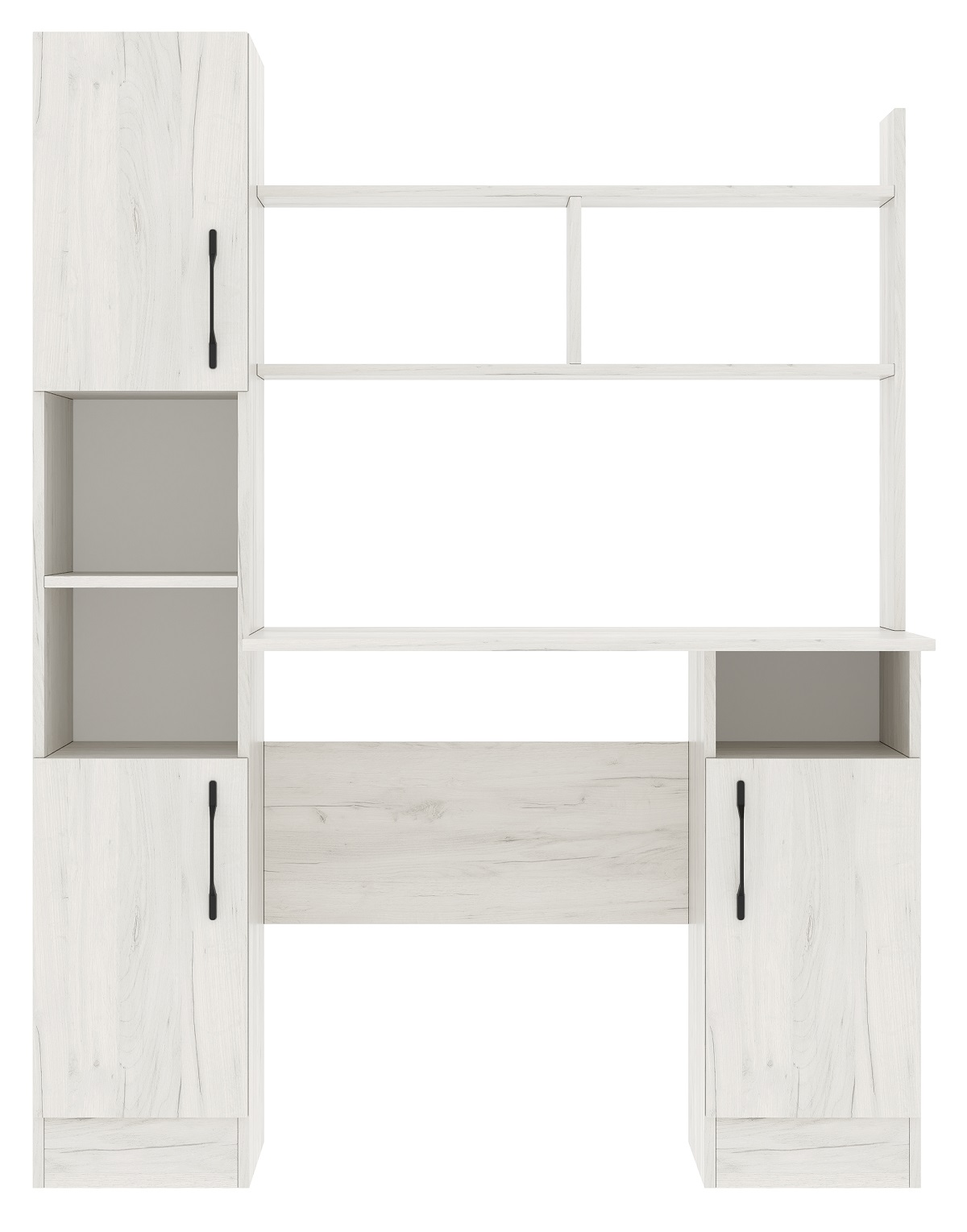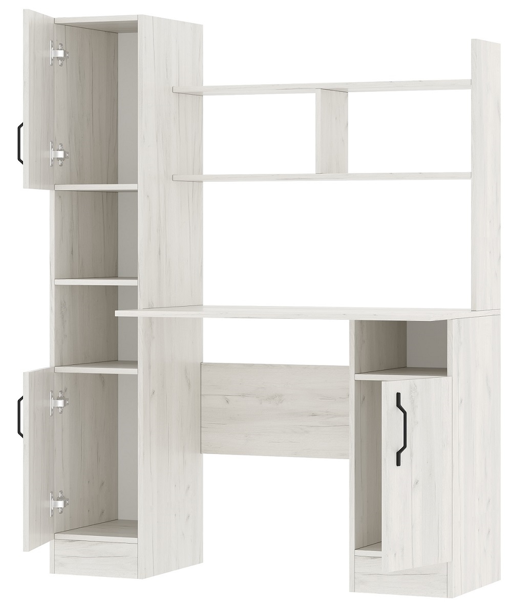 Письменно-компьютерный стол ПКС-6 с пеналом и надстройкой. Столешница обработана кромкой толщиной 1 мм, что делает работу за столом более комфортной и удобной. Чёрная матовая металлическая ручка. Рабочая зона стола 930 х 370 х 570 мм.