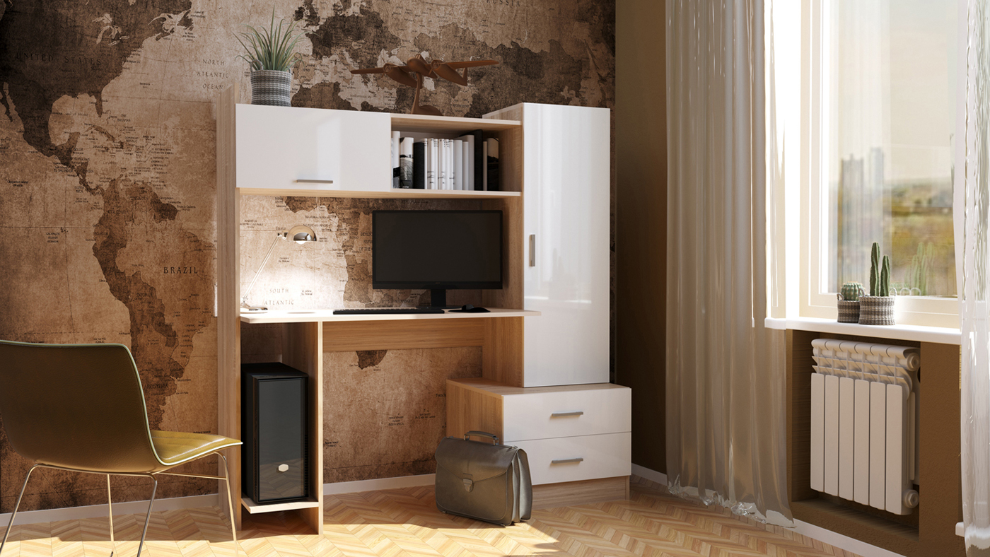 Письменно-компьютерный стол ПКС-7 с 2-мя ящиками на роликовых направляющих и нишей для системного блока. Для удобства открывания и удержания фасада в открытом положении устанавливается газлифт. Столешница обработана кромкой толщиной 1 мм, что делает работу за столом более комфортной и удобной. Рабочая зона стола 1118 х 456 х 570 мм.