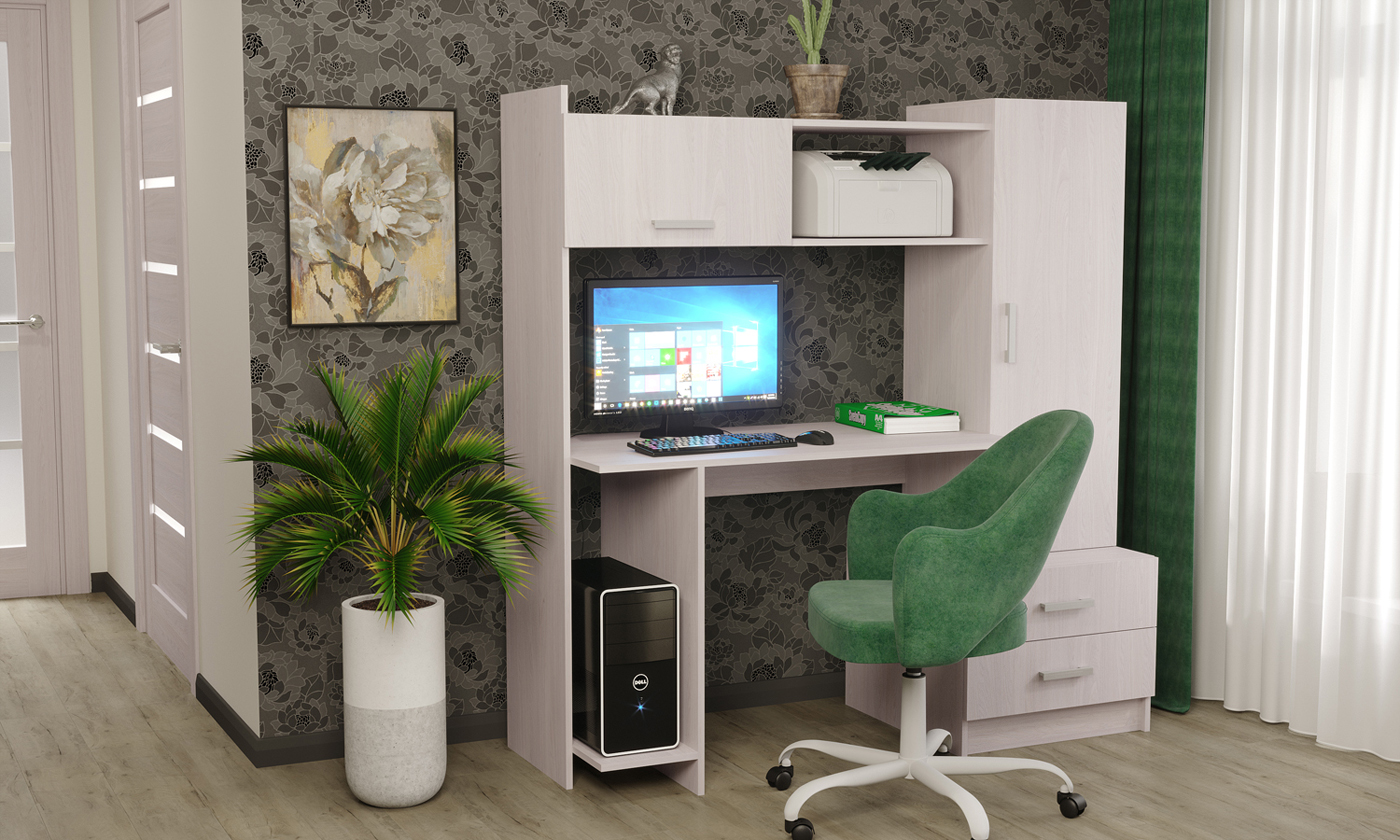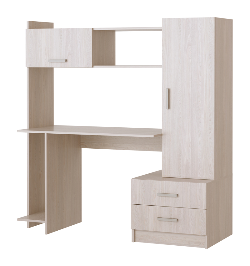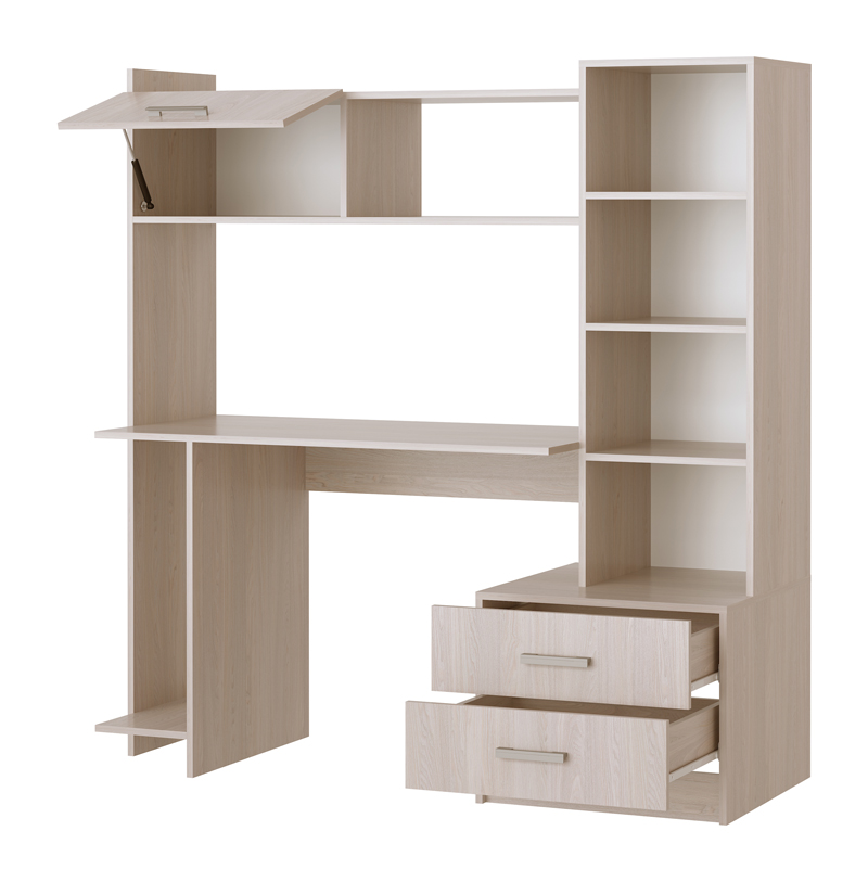 Письменно-компьютерный стол ПКС-7 с 2-мя ящиками на роликовых направляющих и нишей для системного блока. Для удобства открывания и удержания фасада в открытом положении устанавливается газлифт. Столешница обработана кромкой толщиной 1 мм, что делает работу за столом более комфортной и удобной. Рабочая зона стола 1118 х 456 х 570 мм.