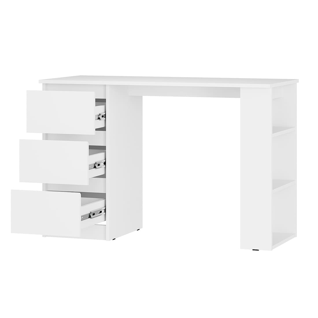 Стол письменный «Симпл» (ПС-07) — компактный, но просторный стол отлично подойдет для работы и учебы. На большой столешнице очень удобно рисовать или делать домашние задания. Здесь найдётся место как для ноутбука, так и для монитора с клавиатурой. Тумба с тремя выдвижными ящиками на шариковых направляющих для школьных принадлежностей и три открытых полки собираются зеркально. Максимальная нагрузка на ящик - 5 кг, на вязку - 10 кг. «Симпл» - это современная коллекция функциональной мебели. В ней собраны все необходимые предметы для интерьера спальни, гостиной и личной комнаты: шкафы, кровати, комоды, столы, тумбы. Также в состав композиции входят малые формы, которые станут изюминкой вашего дома. Коллекция полностью соответствует своему названию. Простой и стильный дизайн, отсутствие лицевой фурнитуры, распашные створки на отталкивателях (кроме тумбы ТБ-06 и тумбы ТБ-19) покорит ценителей минимализма. Мебель, выполненная в спокойных оттенках «белый» и «графит», идеально дополнит как классический, так и современный интерьер. Коллекция отличается практичностью и функциональностью. Полноценный набор мебели позволяет экспериментировать с пространством. Ещё одна особенность коллекции заключается в уникальной фрезеровке торцов фасадов - она выполнена под углом 45 градусов. Благодаря этой детали образовывается удобная интегрированная ручка, которая делает использование мебели более комфортным. Мебель этой коллекции оснащена надежными опорами из безопасного пластика – это позволит не только комфортно проводить влажную уборку, но и уберечь напольное покрытие от повреждений.